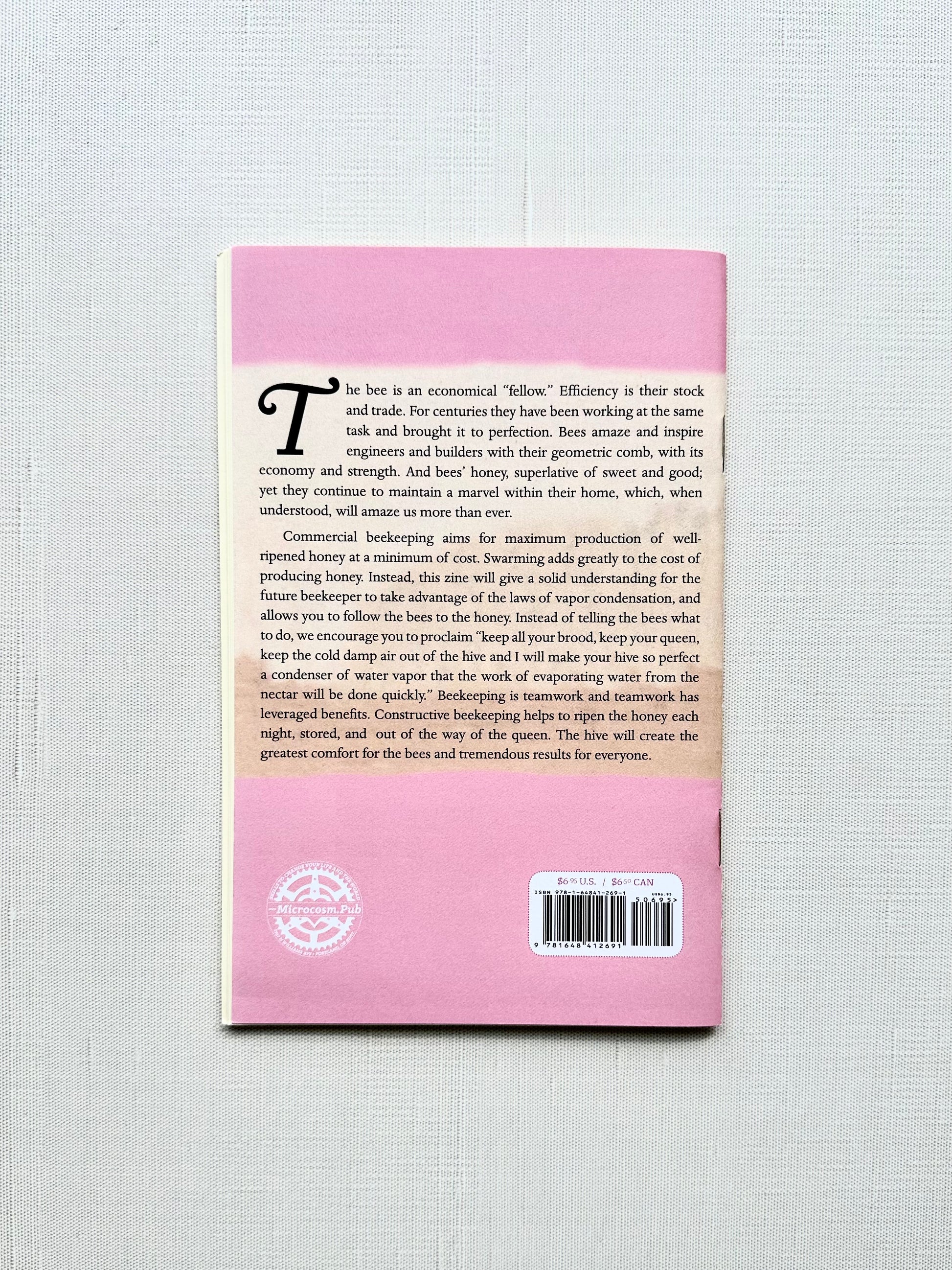 Bees amaze and inspire engineers and builders with their geometric comb, with its economy and strength. And bees’ honey, superlative of sweet and good; yet they continue to maintain a marvel within their home, which, when understood, will amaze us more than ever. Commercial beekeeping aims for maximum production of well-ripened honey at a minimum of cost. Swarming adds greatly to the cost of producing honey. Instead, this zine will give a solid understanding for the future beekeeper to take advantage of the laws of vapor condensation, allowing you to follow the bees to the honey.
