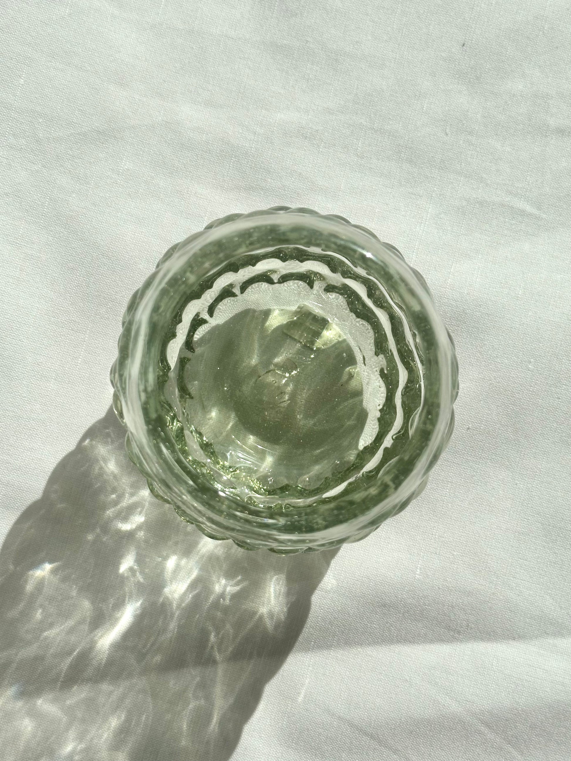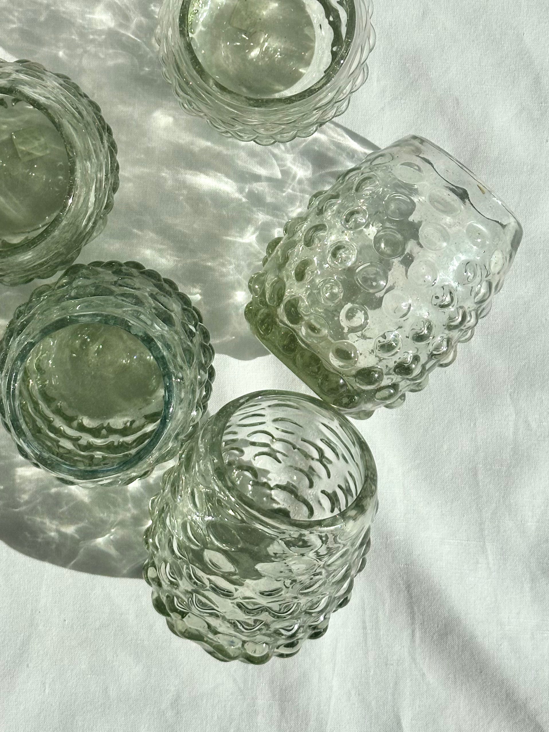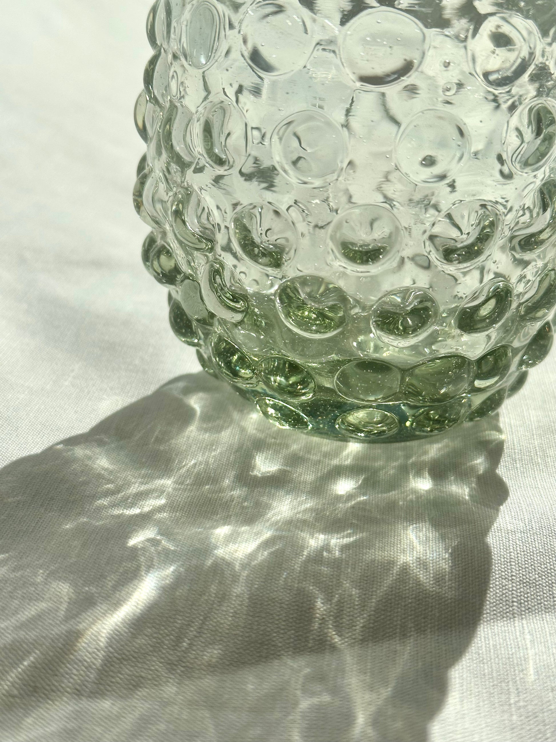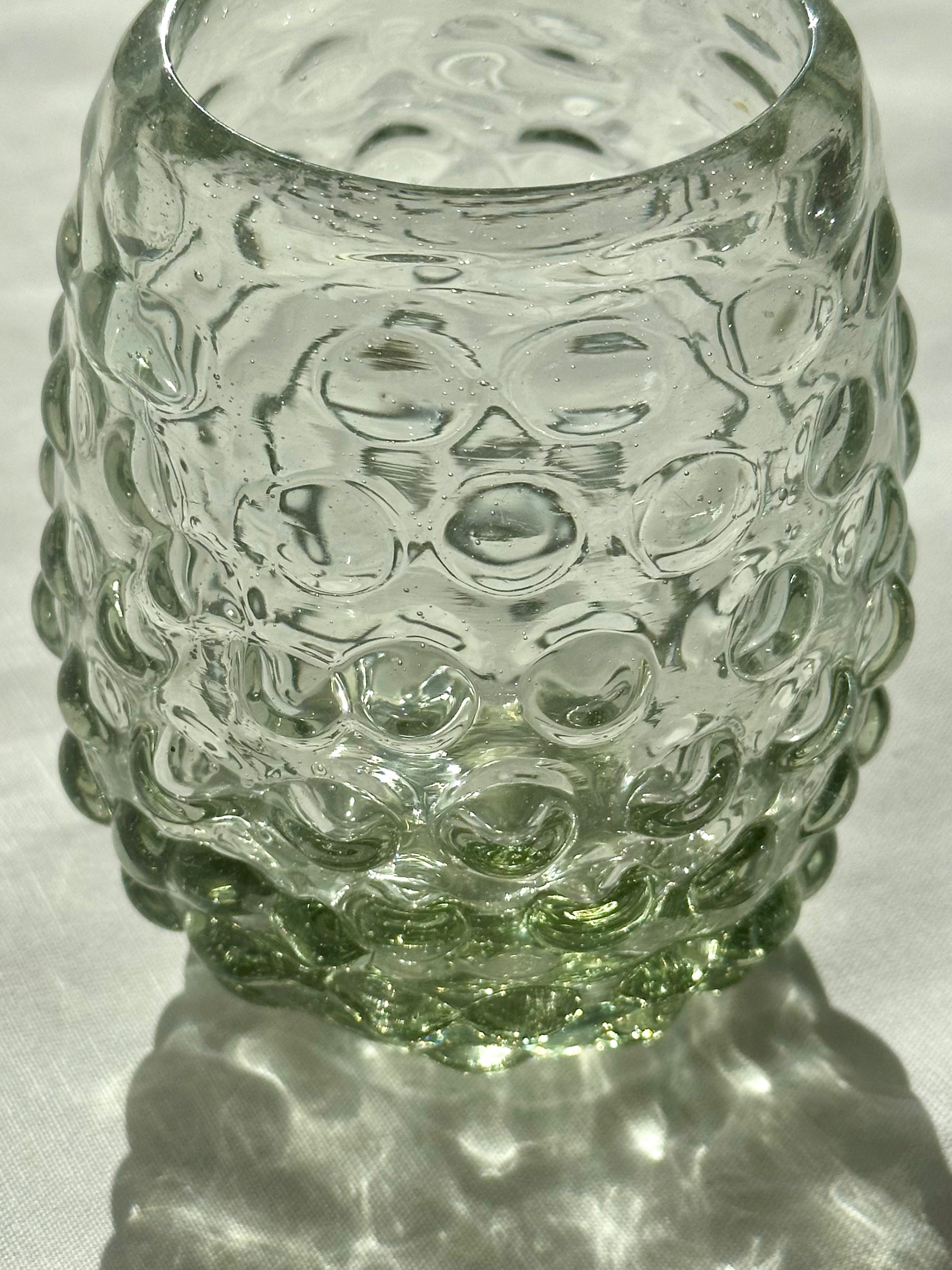 Hand blown tumblers with bubble pattern made in Guadalajara, Mexico from recycled glass. Perfect for mocktails, juice, wine, and water.