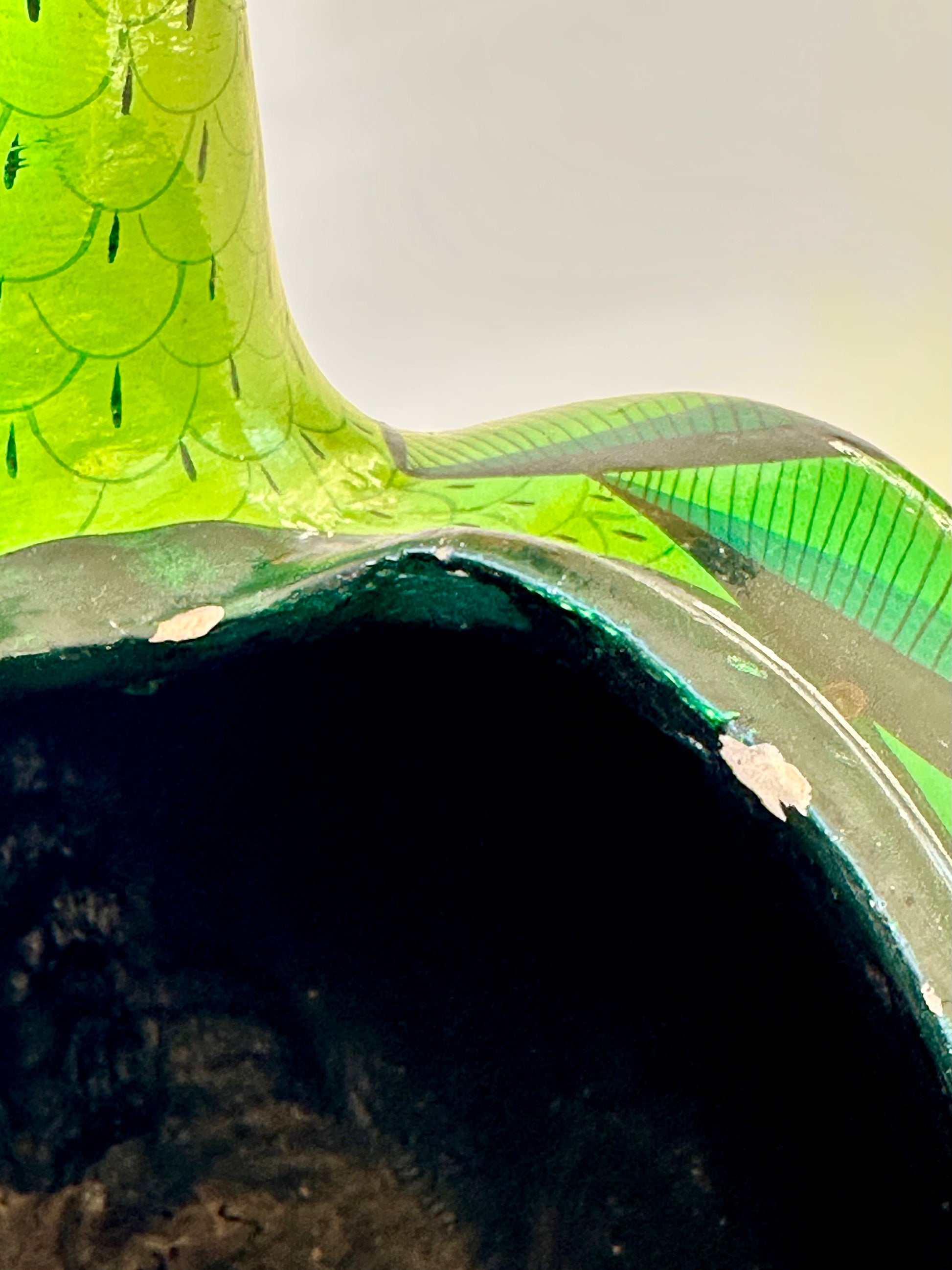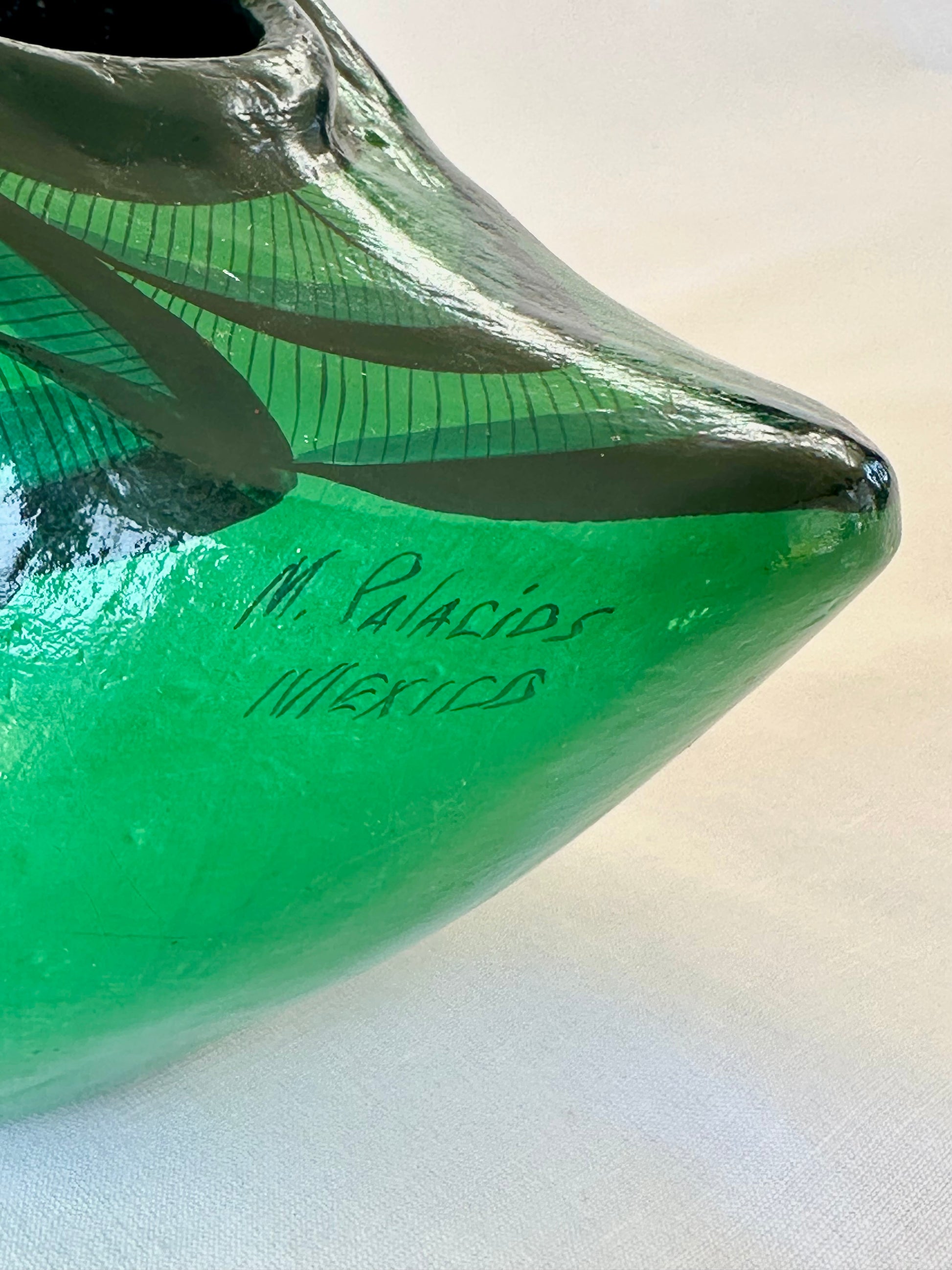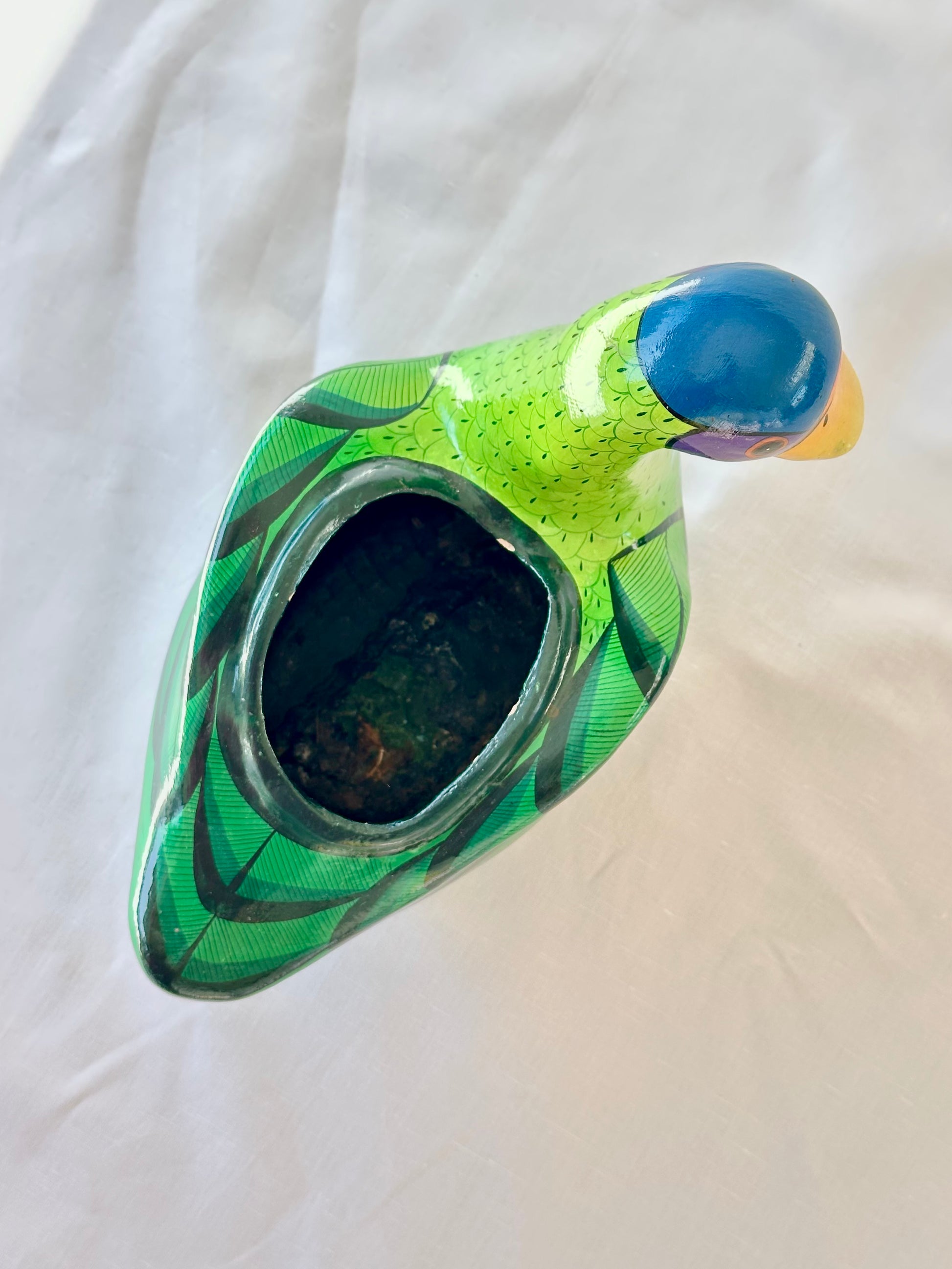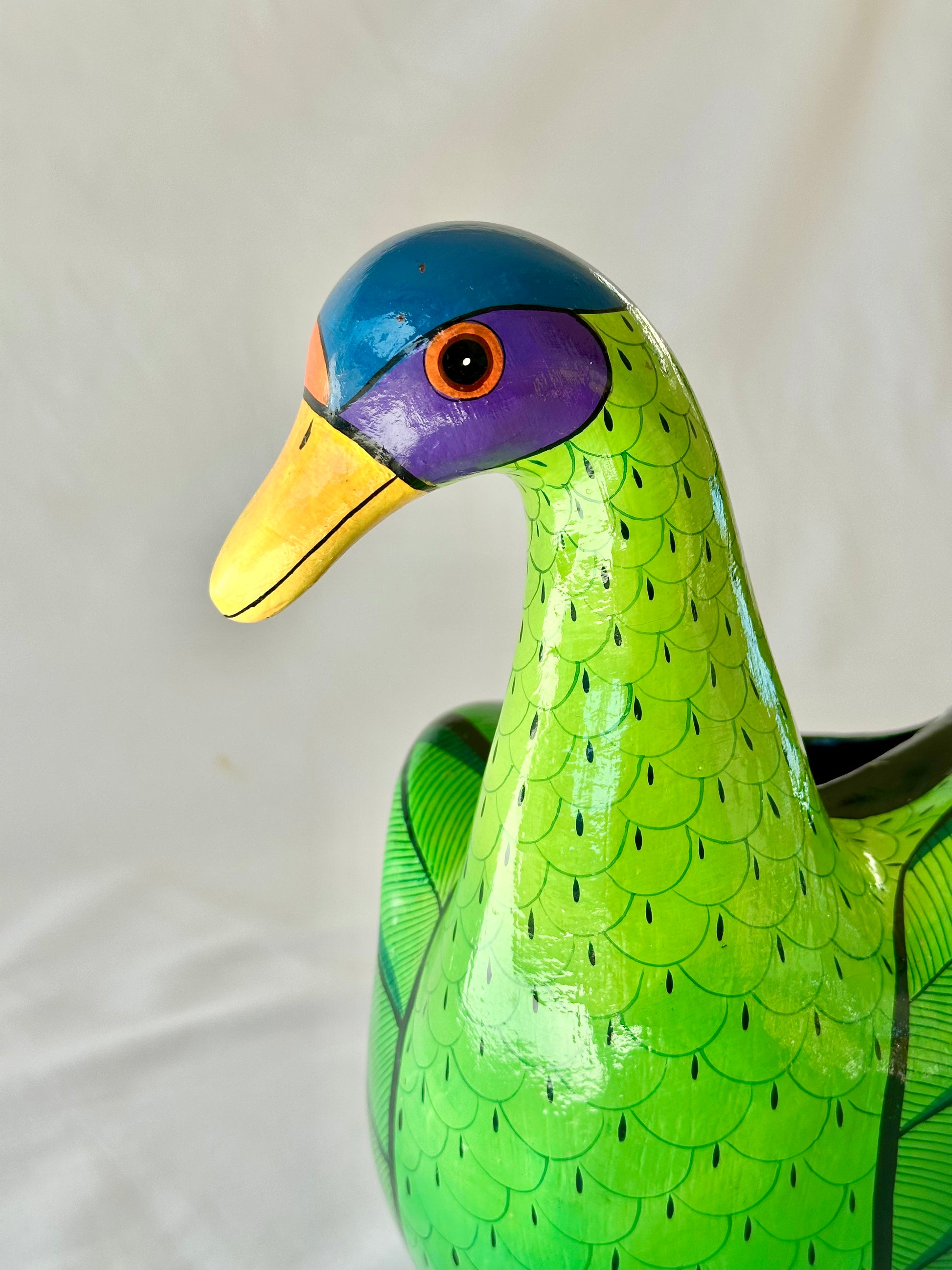 Unique handmade and hand painted 1960s duck folk art ceramic planter by artist M. Palacios.