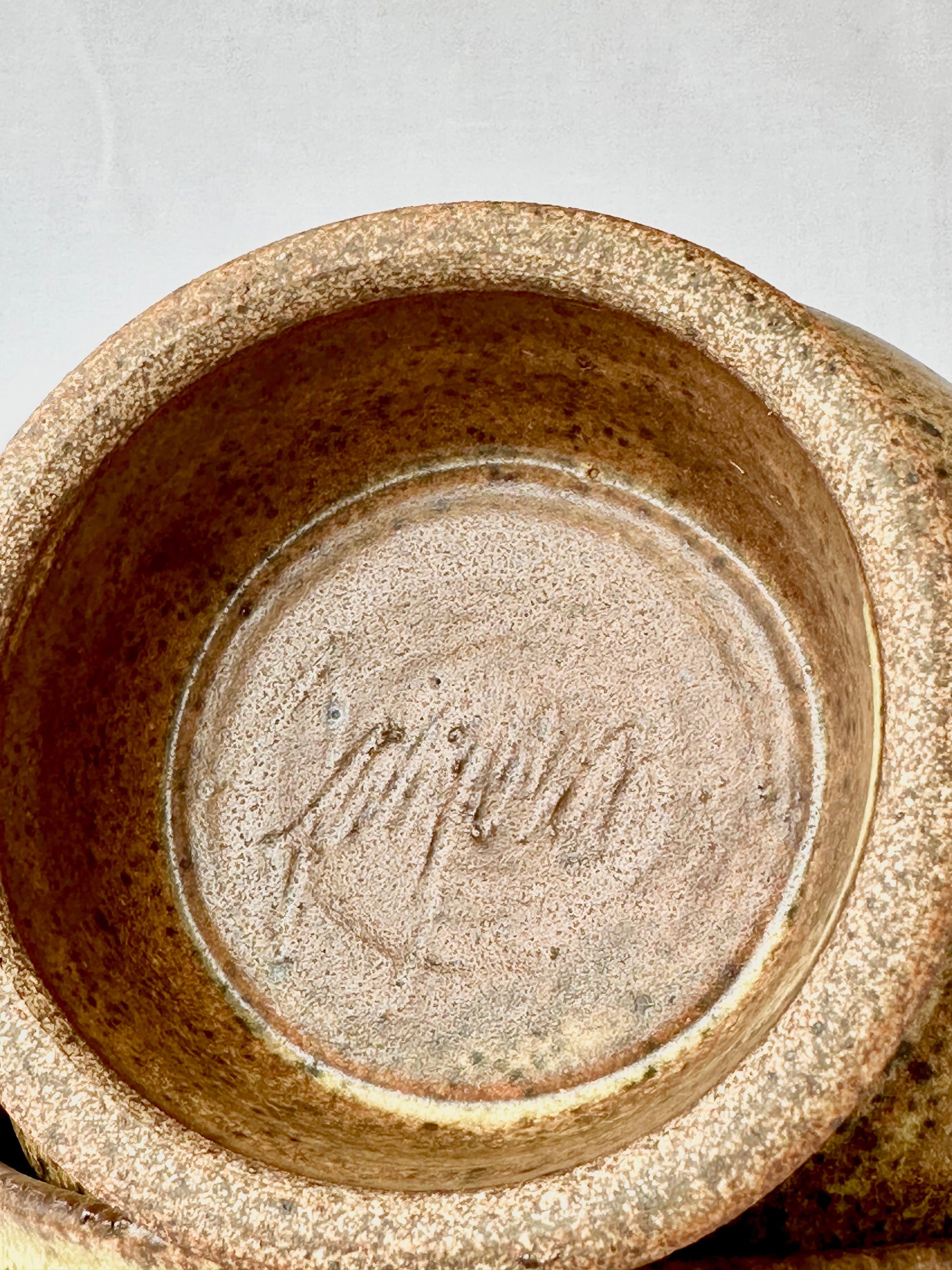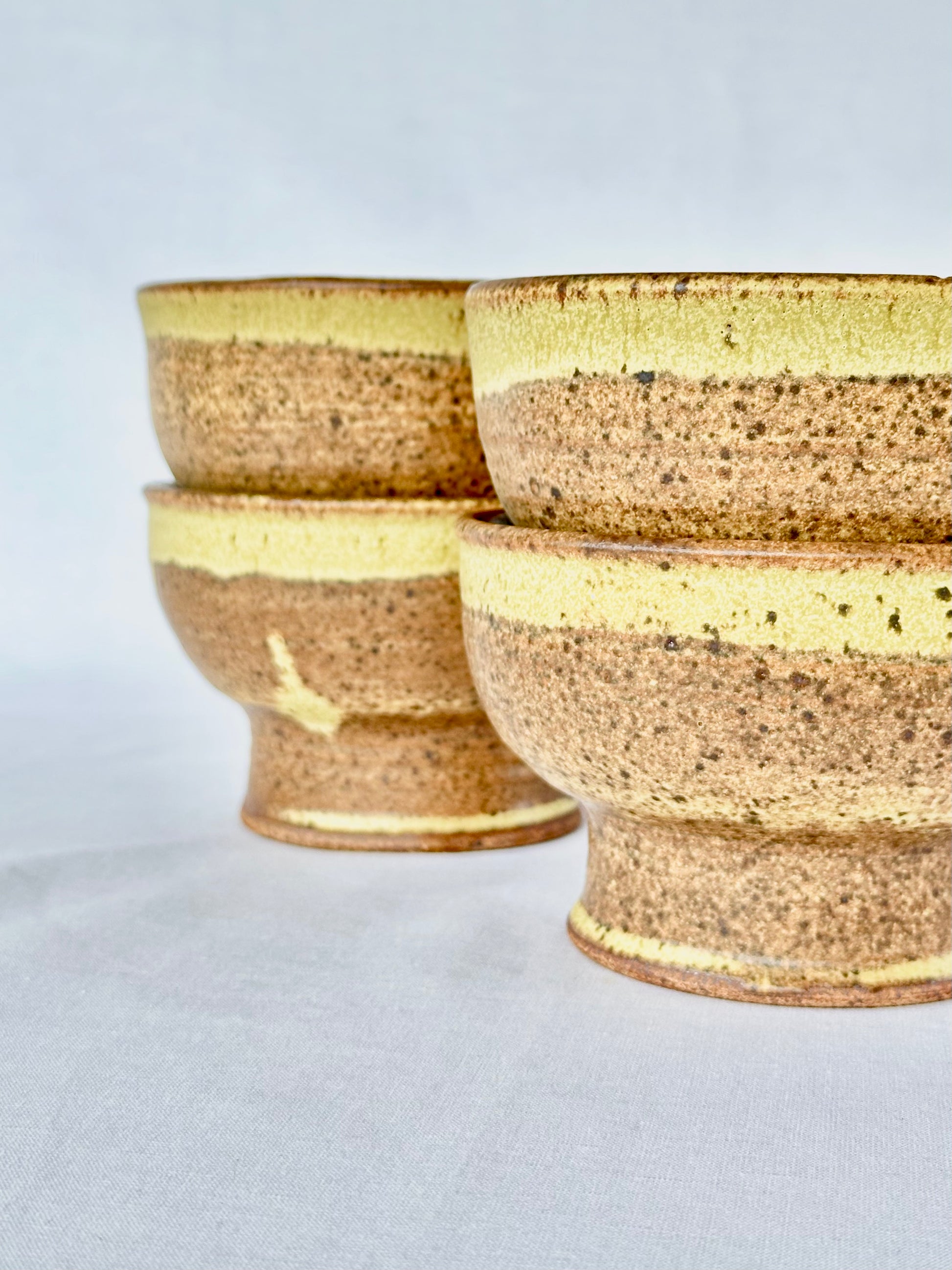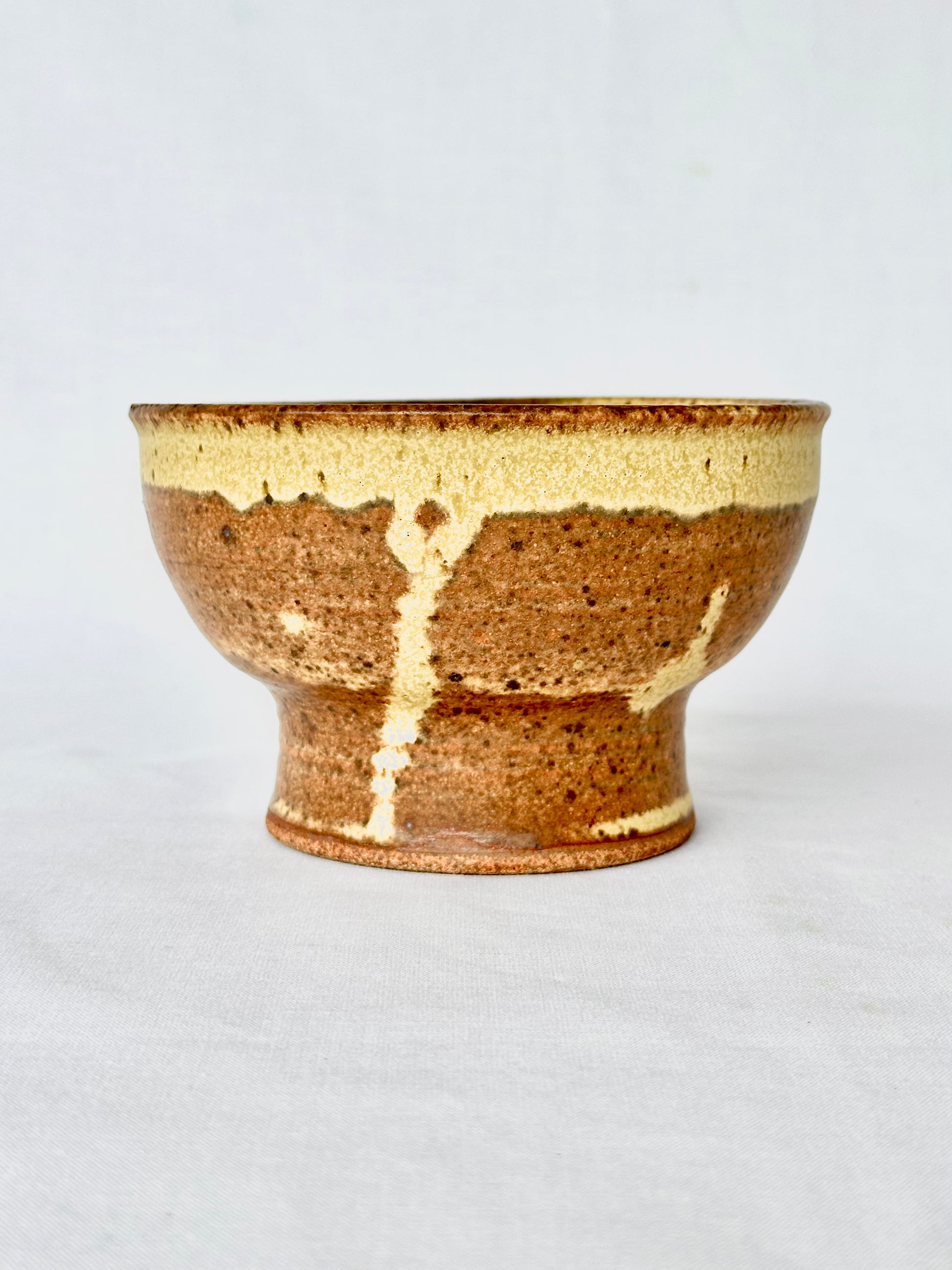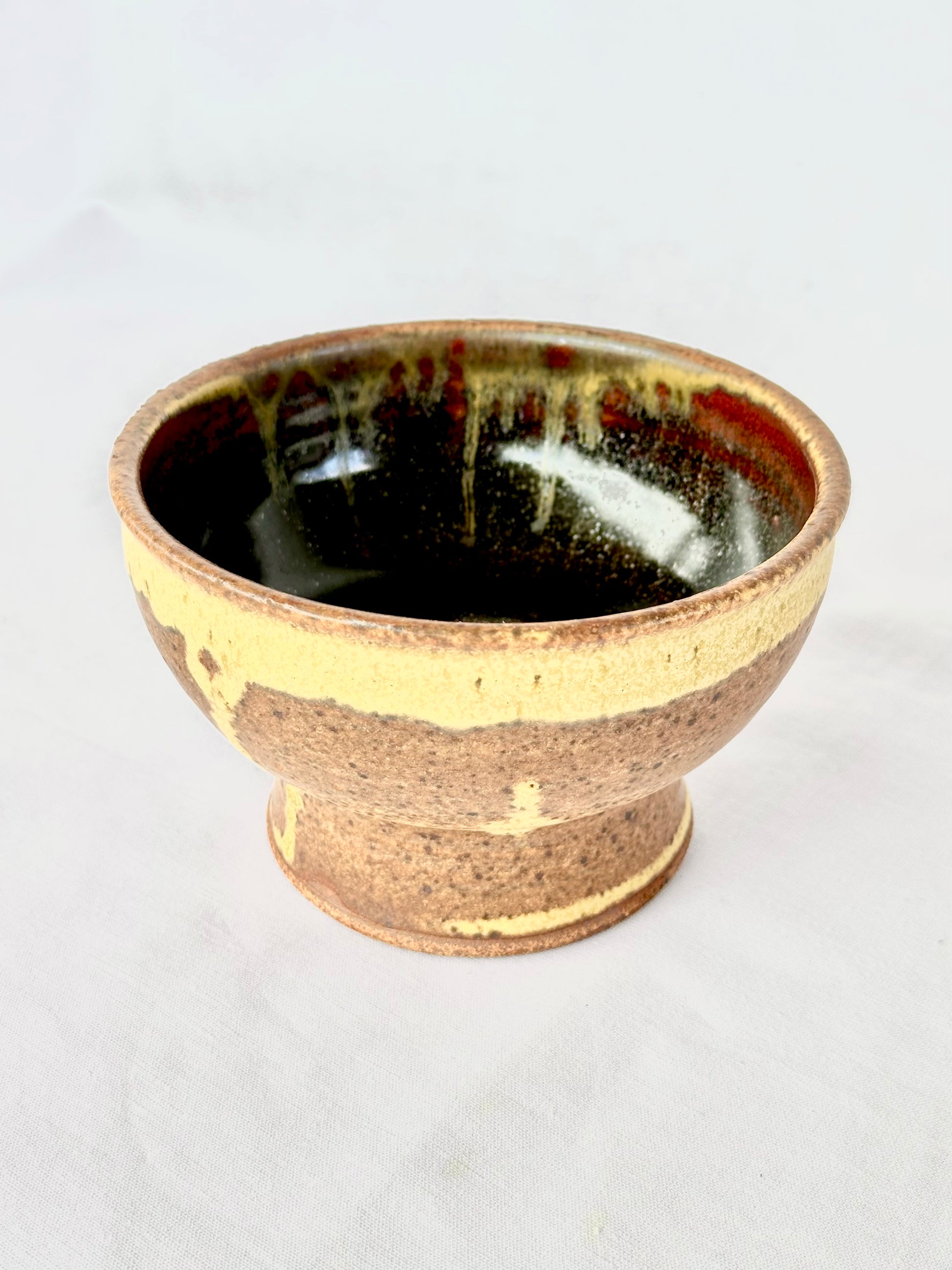 Beautiful 1950s vintage handmade ceramic footed bowls glazed with earthy tones. Sold individually.