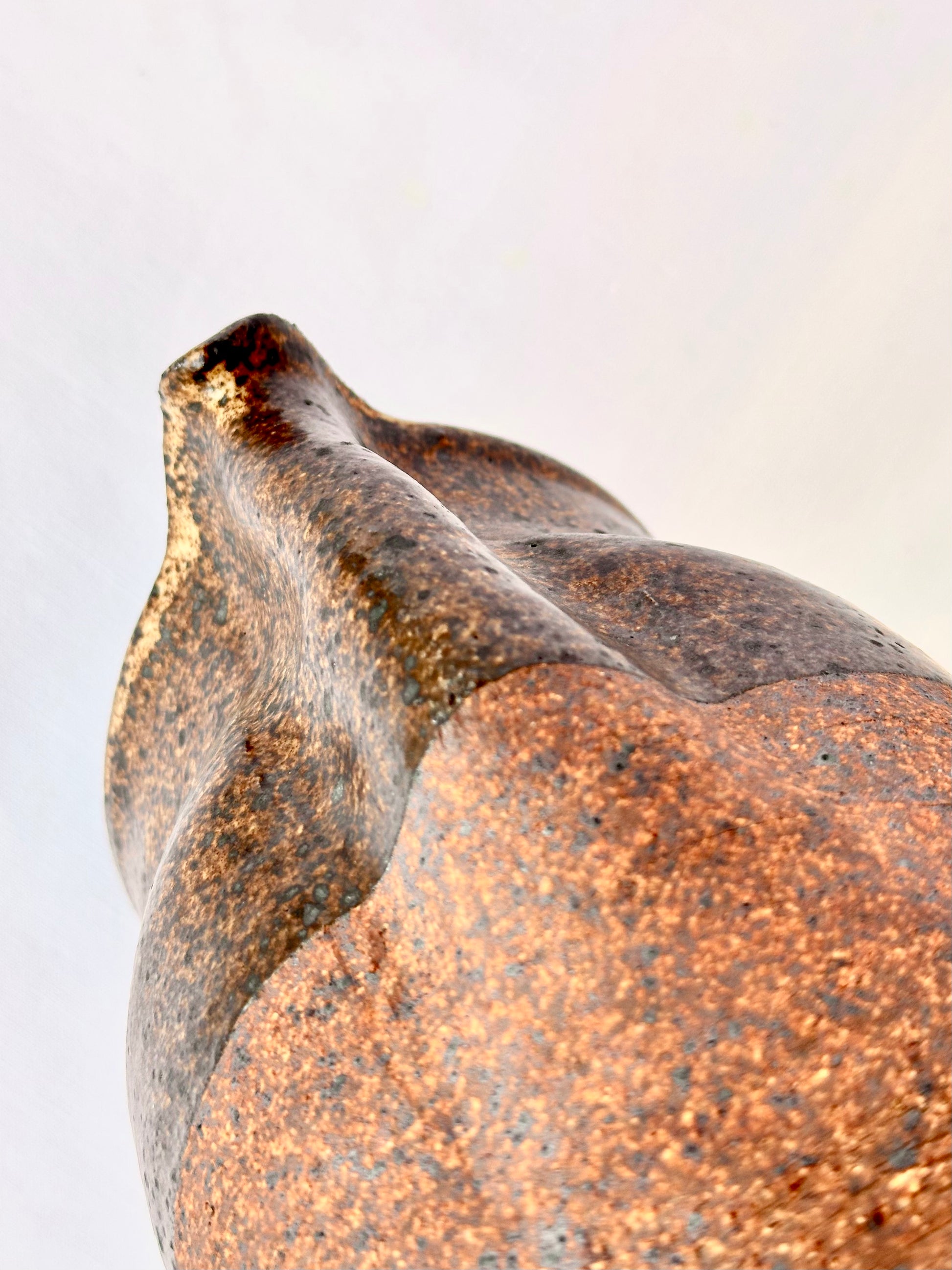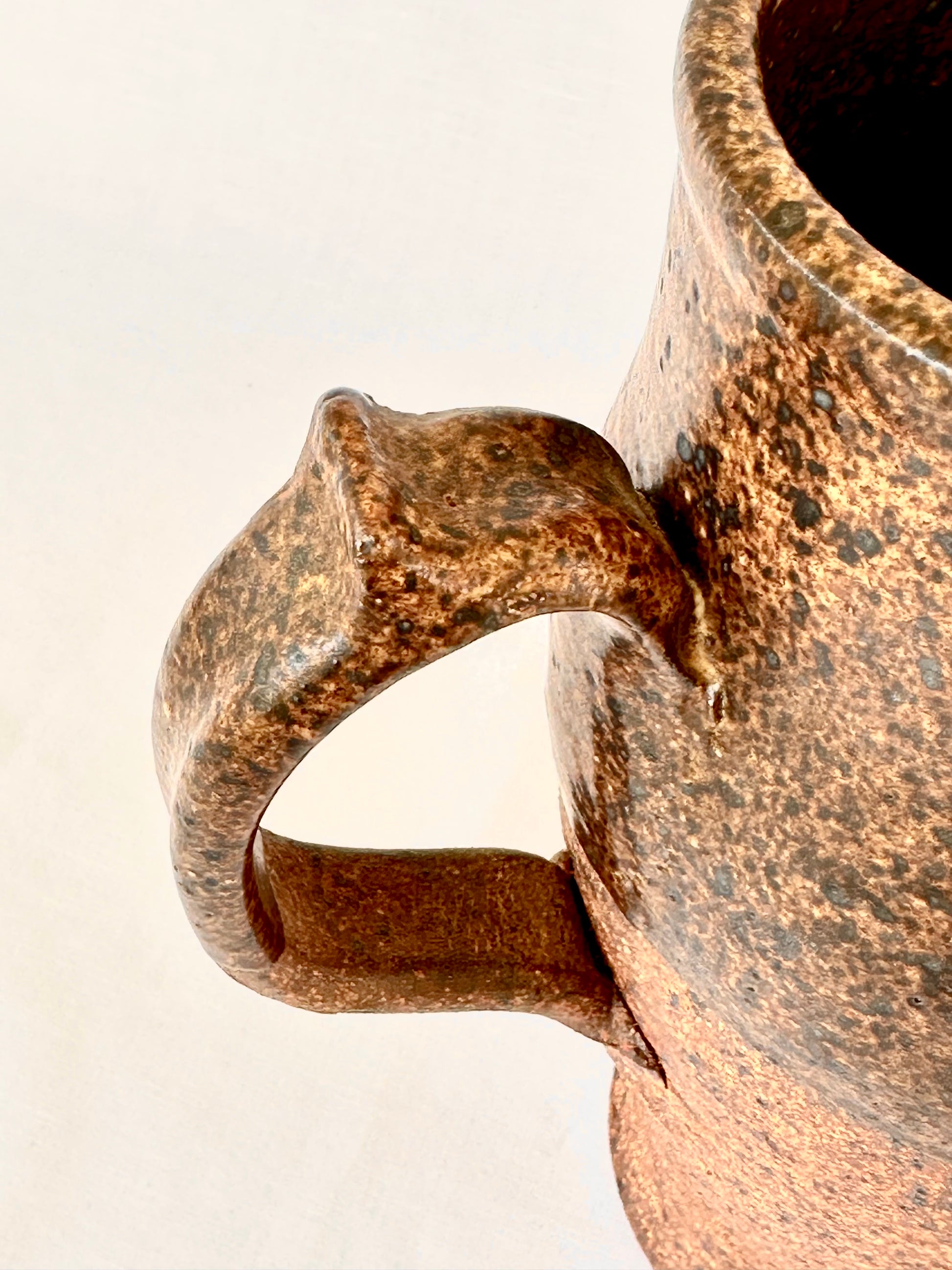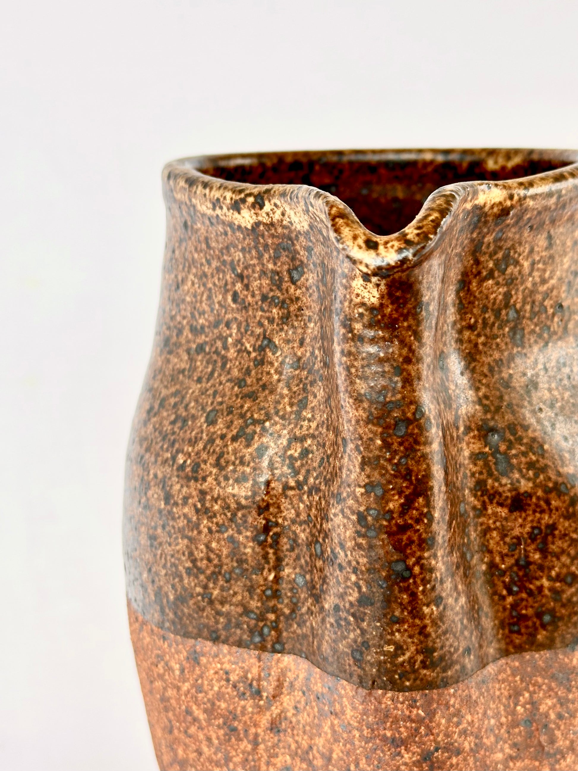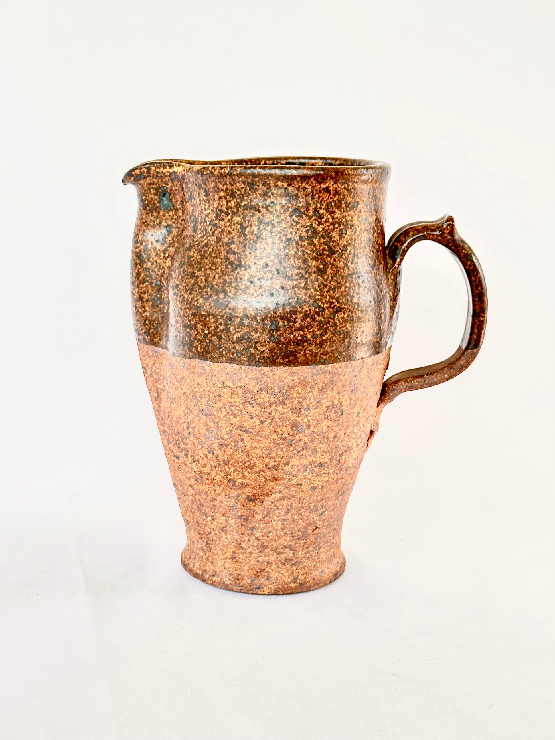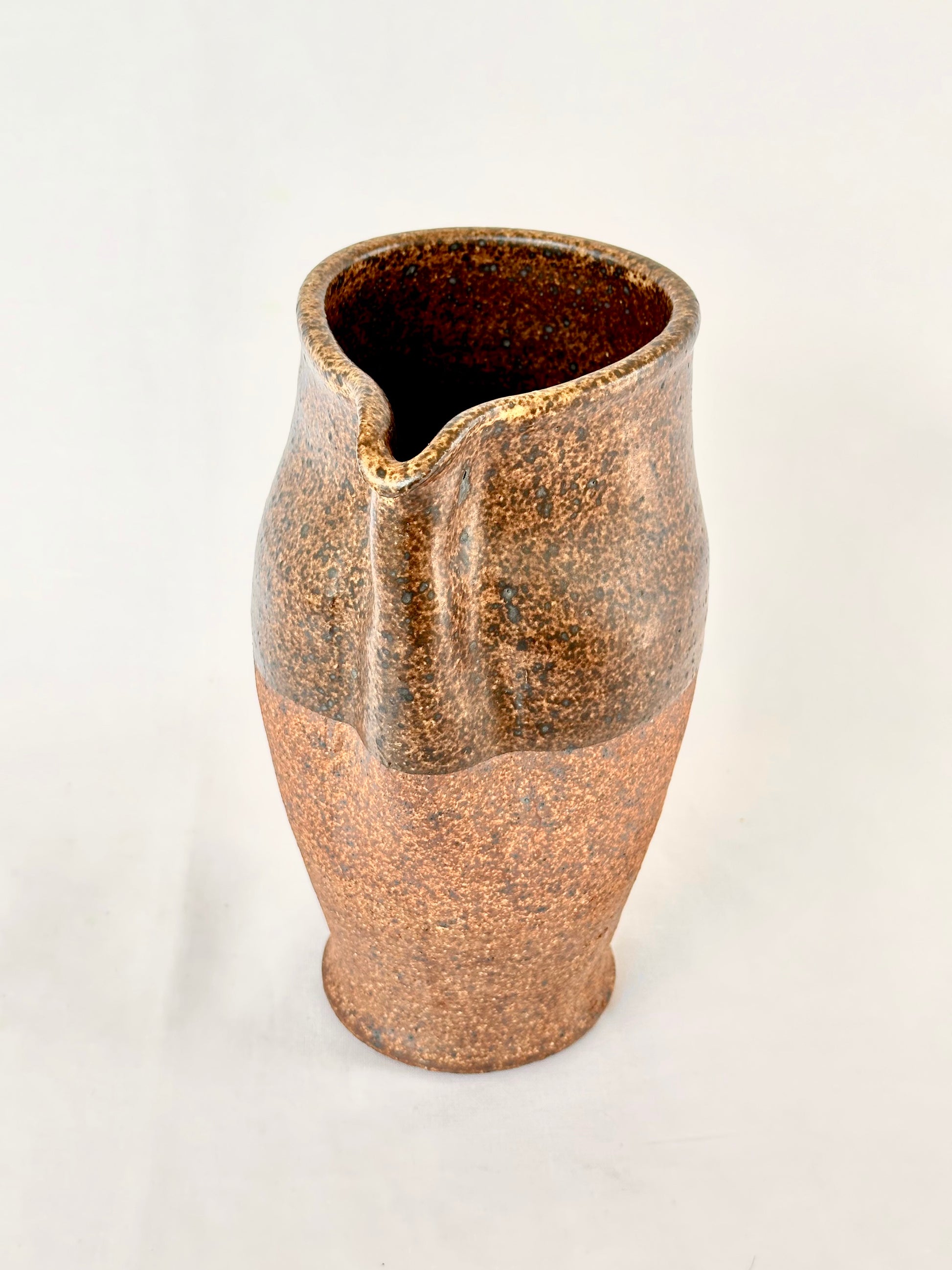Spectacularly unique 1960s vintage handmade ceramic pitcher glazed in rich earthy tones.