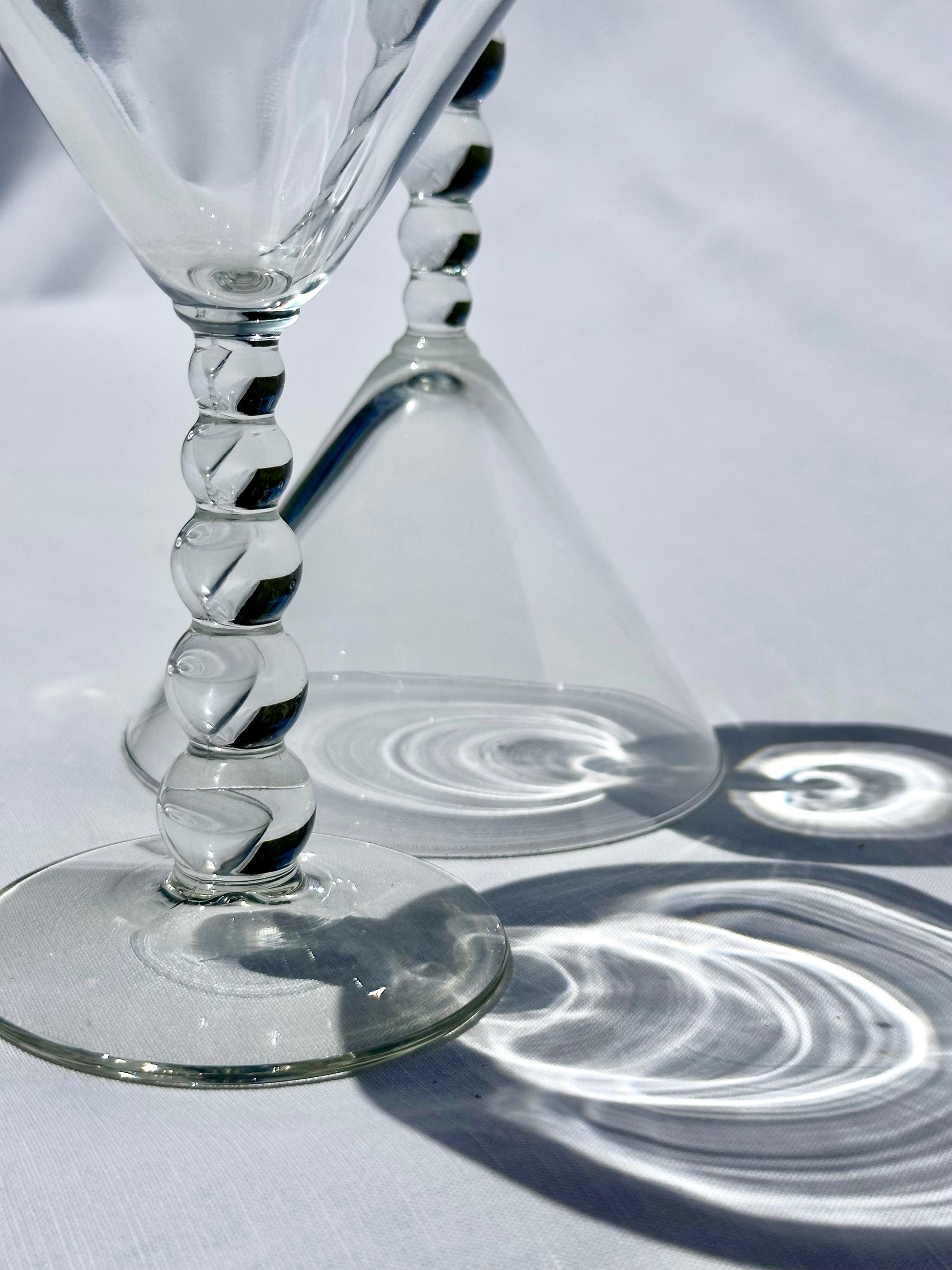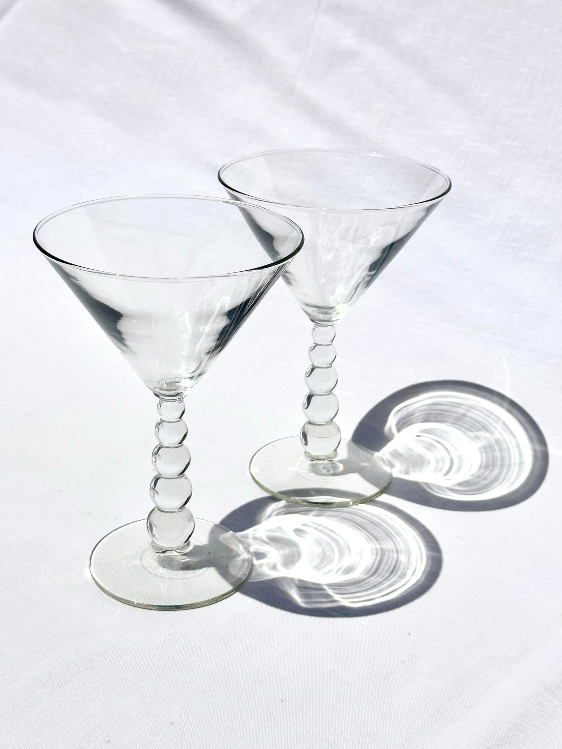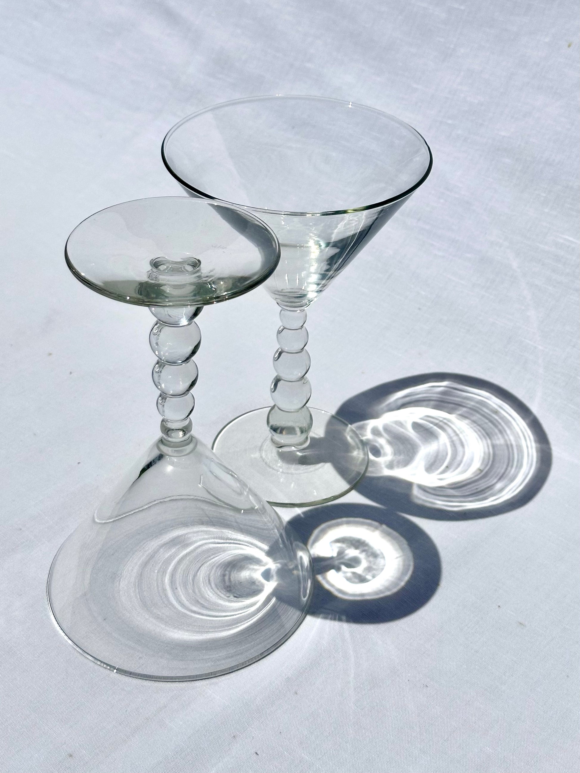 Vintage 1980s Martini Glasses with bubble stem (Sold as set)