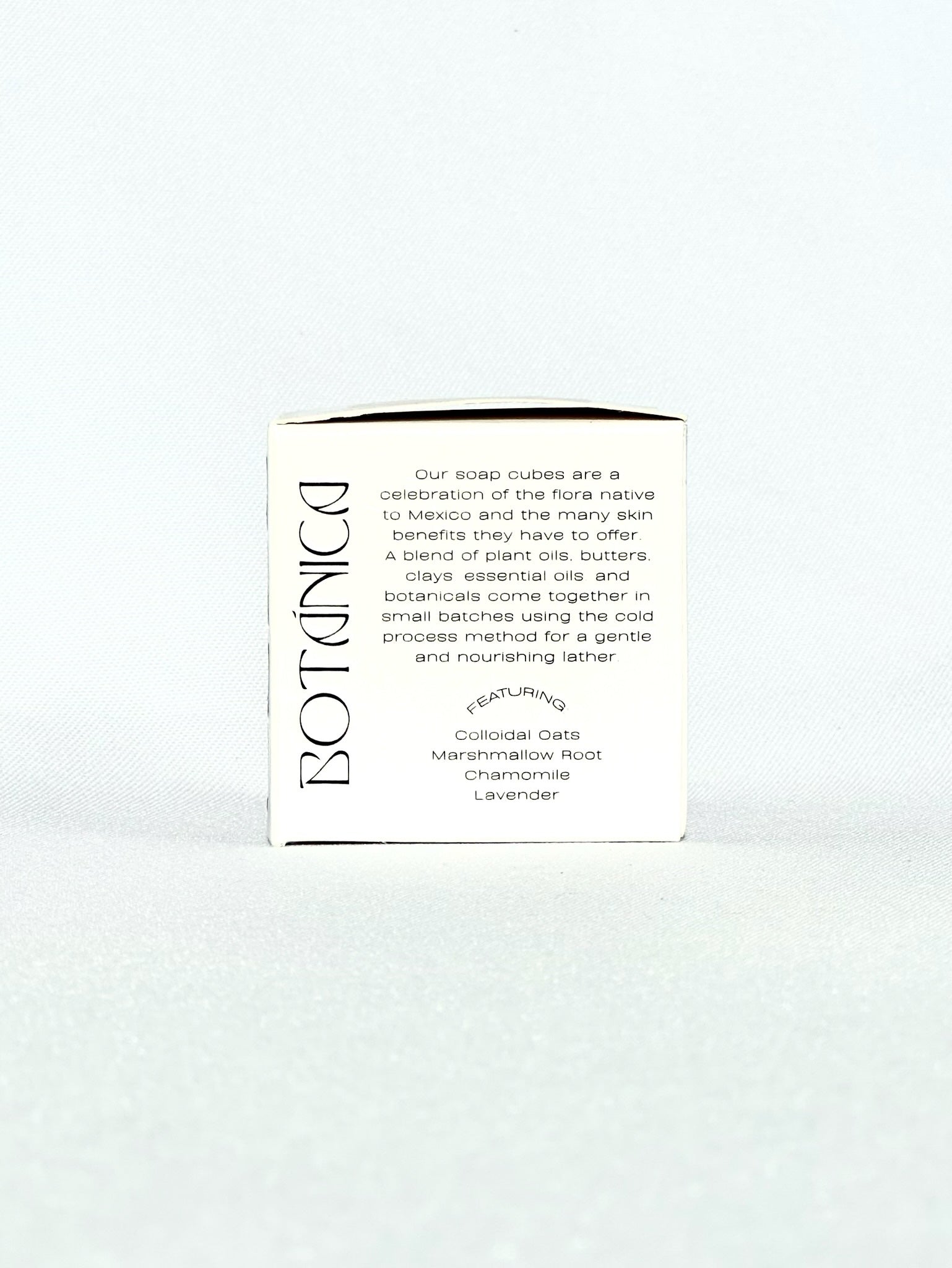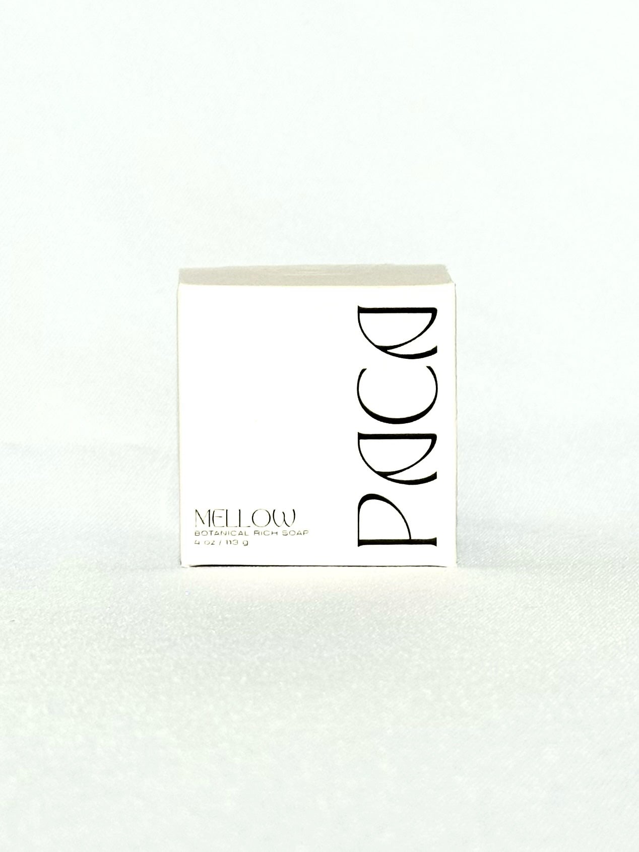 The most gentle cube soap offering. Solar-infused lavender, chamomile, marshmallow root, and soothing colloidal oats come together for a creamy, ultra-calming lather. Mellow's fan-favorite lavender and patchouli essential oil blend helps to ground and calm both mind and body.