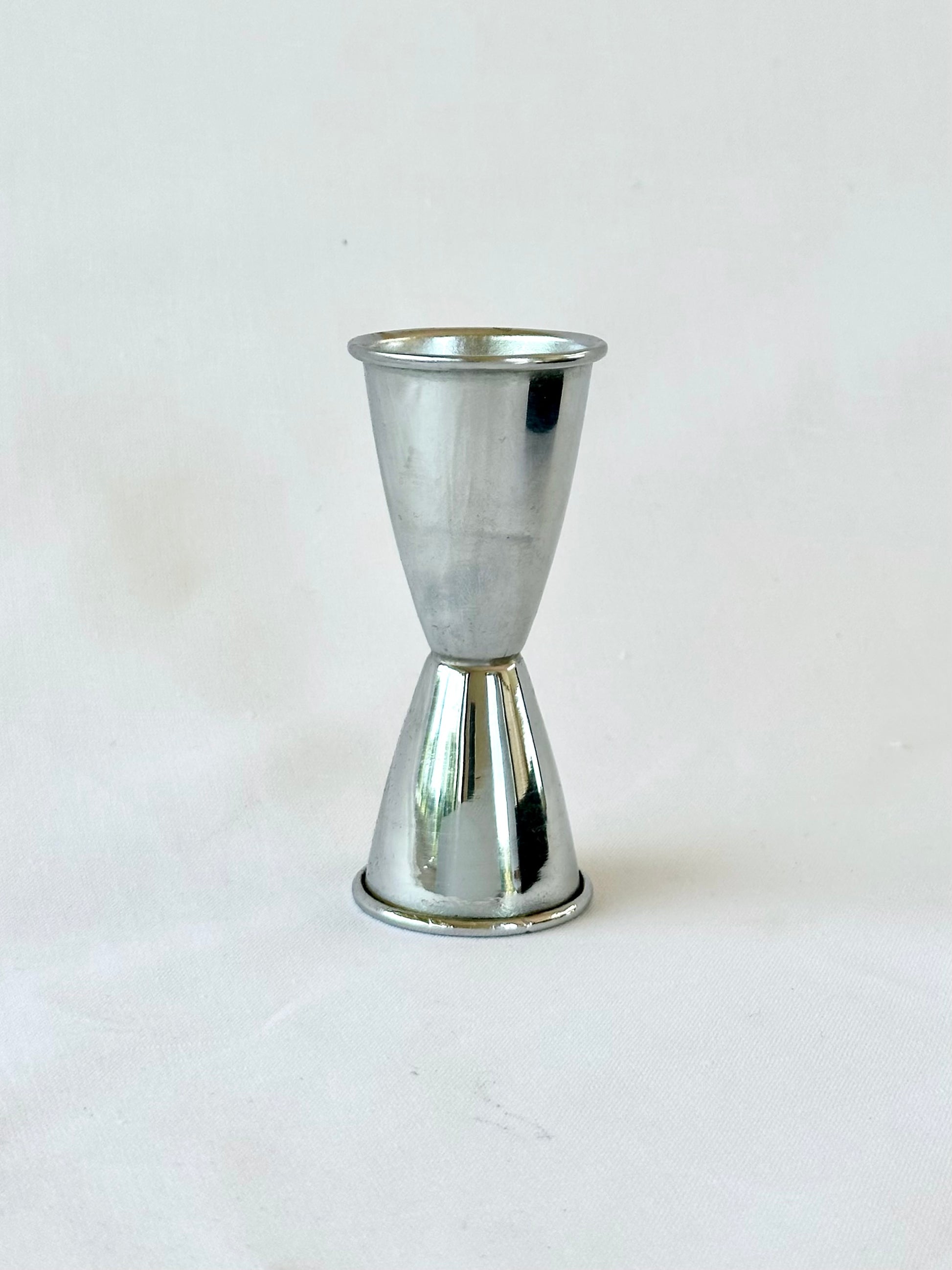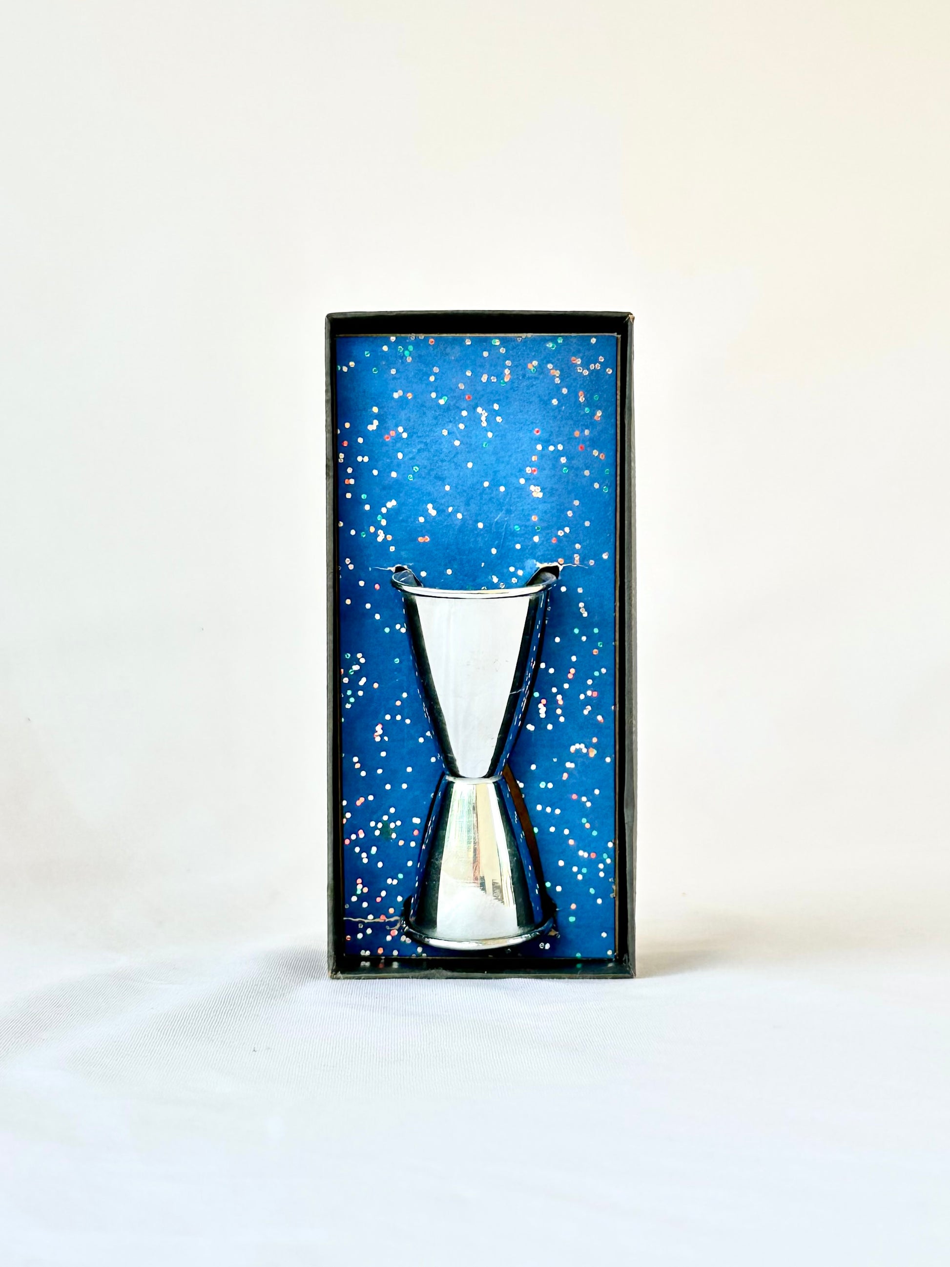 Measure drinks in vintage style using this 1950s double-sided jigger duo by Modern Sales Company, Torrance California! It comes in its original box and is a nice, simple design that’s a fabulous gift for the home bartender. Sold individually.