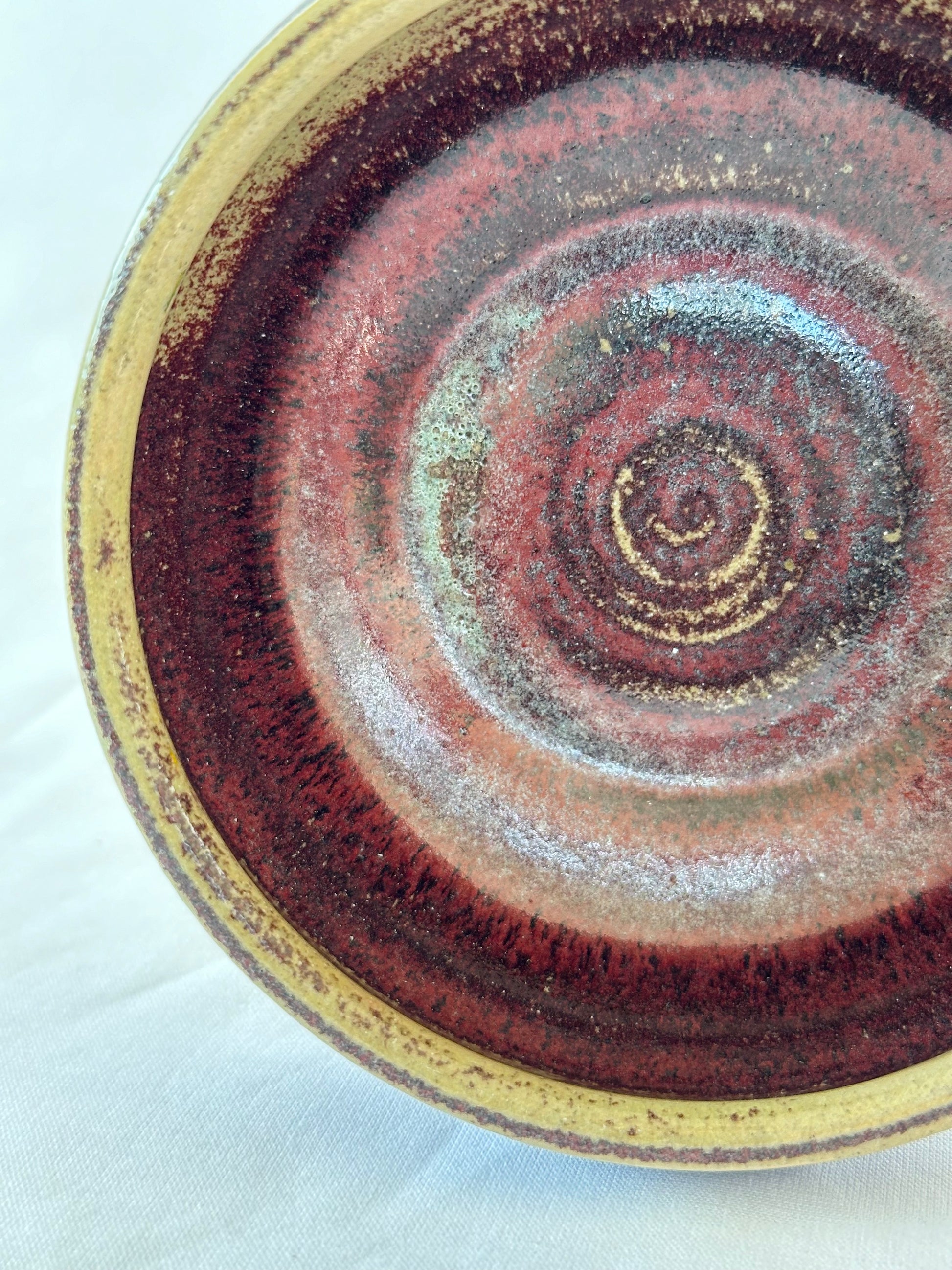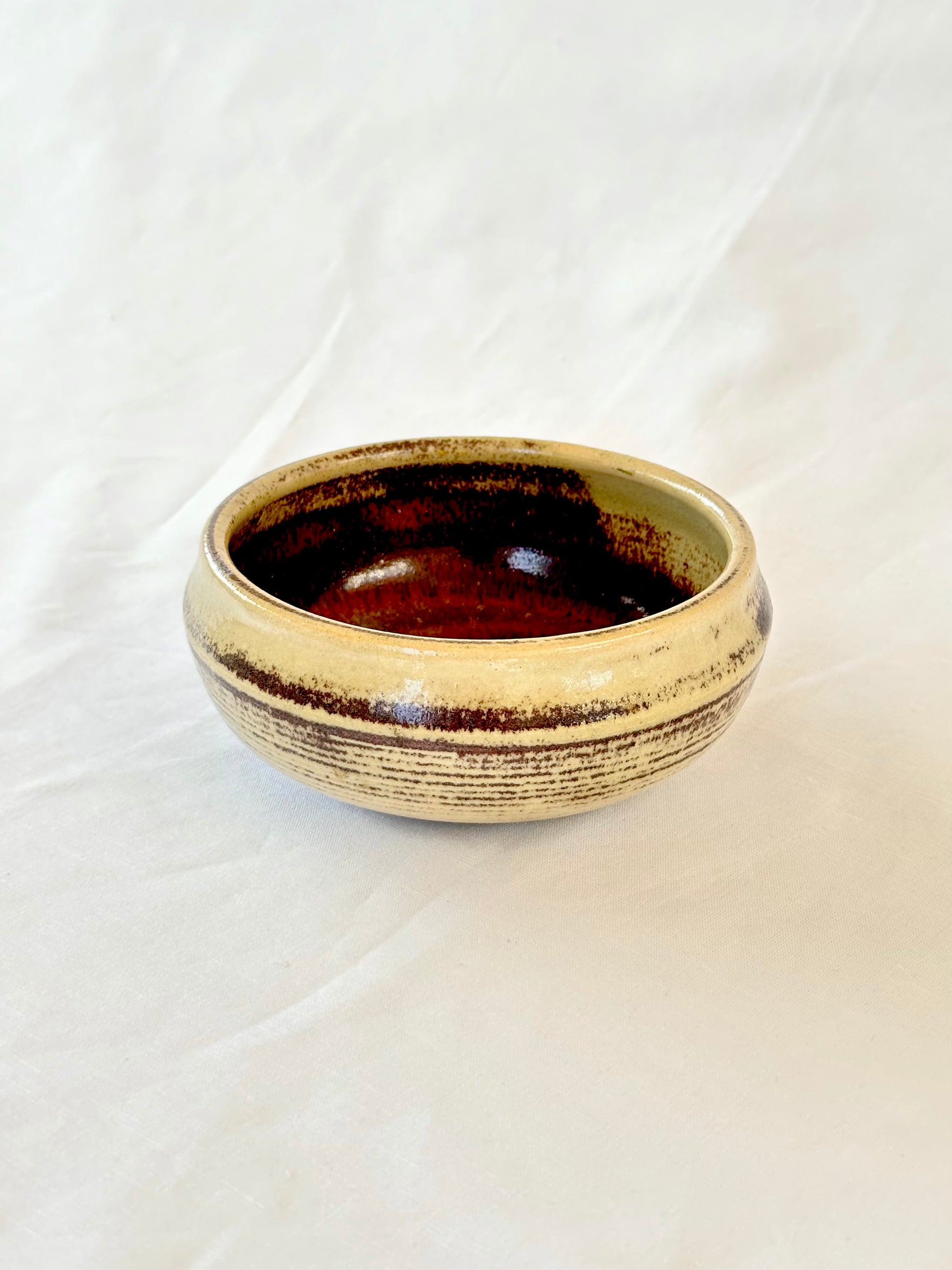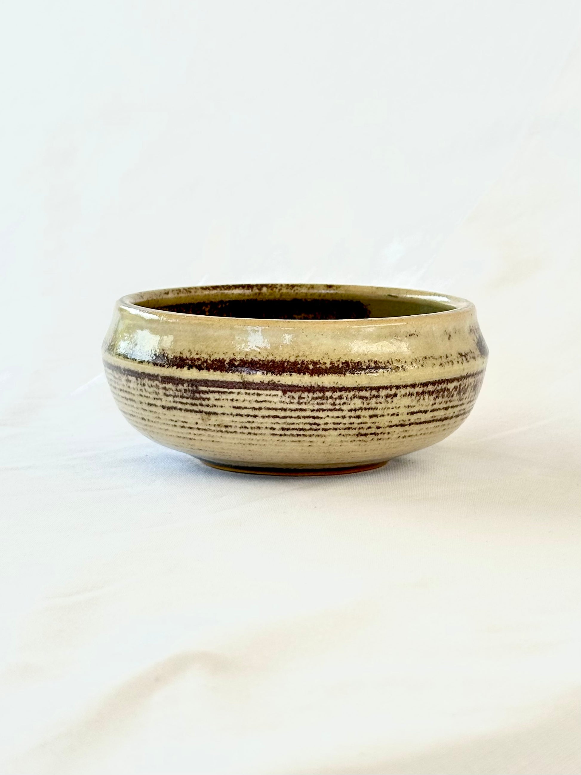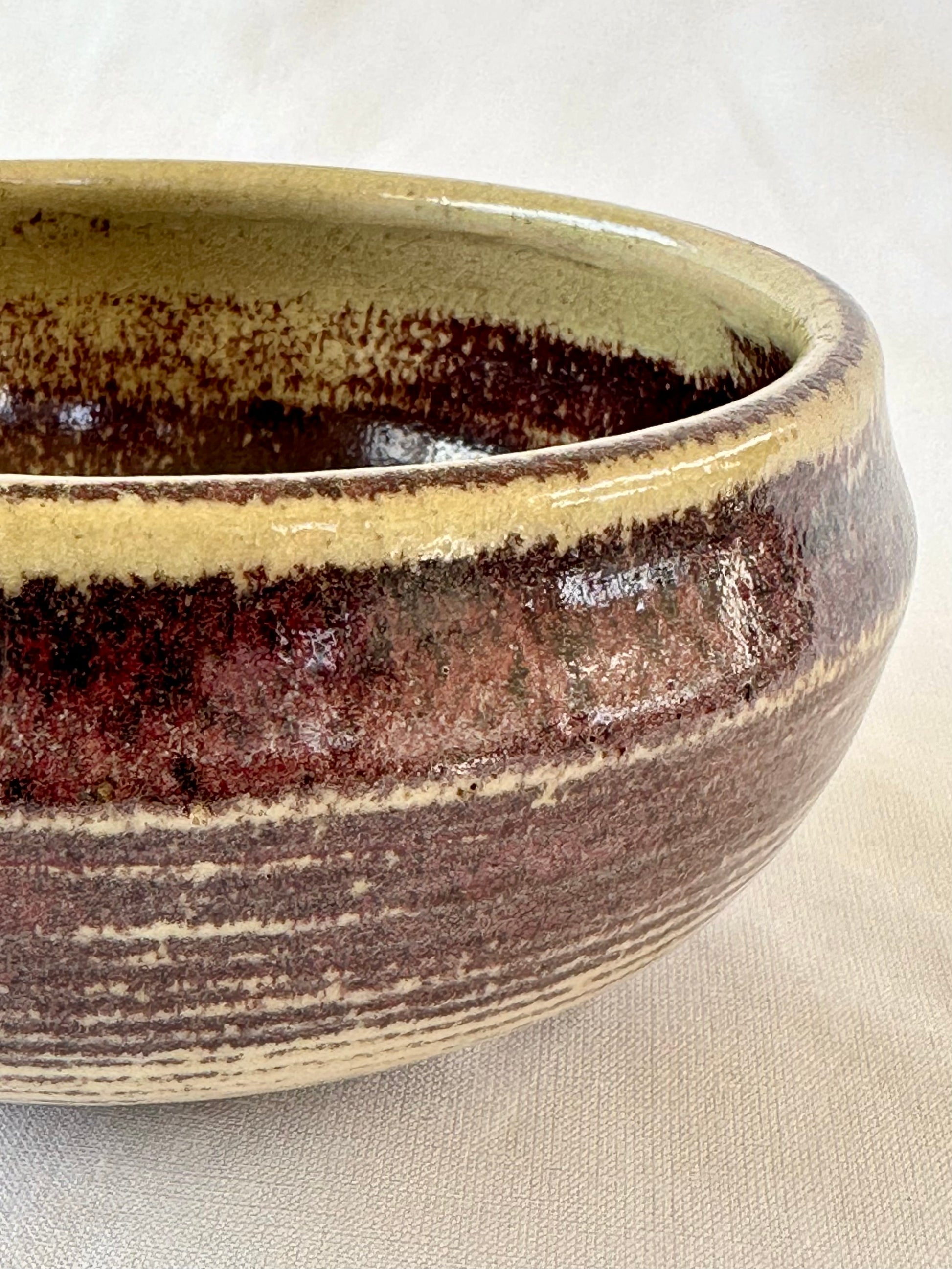 A lovely one-of-a-kind 1925 handmade ceramic pottery bowl glazed with earthy tones signed by Cox.