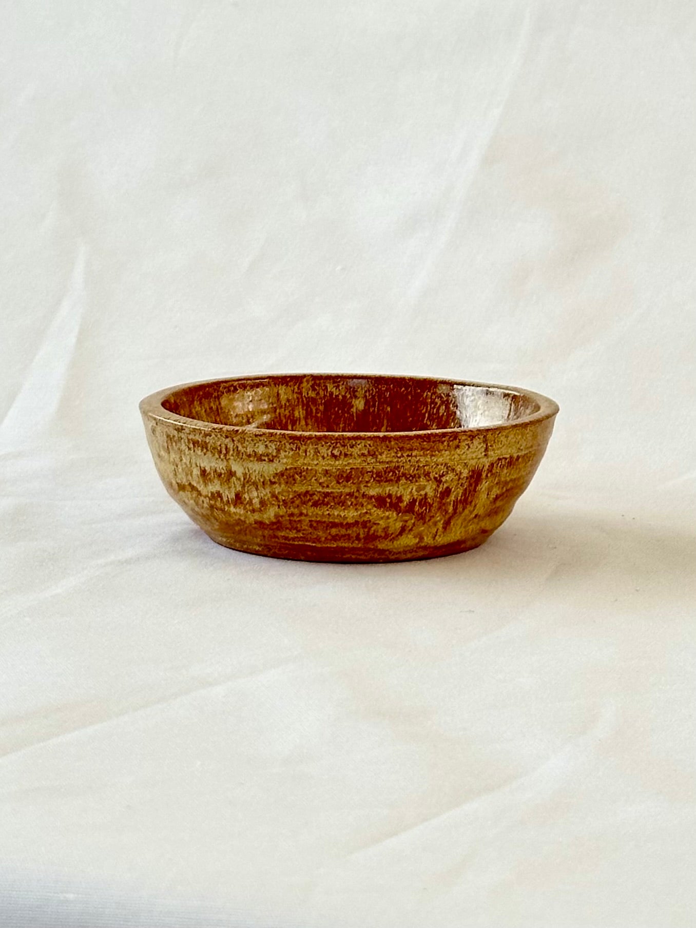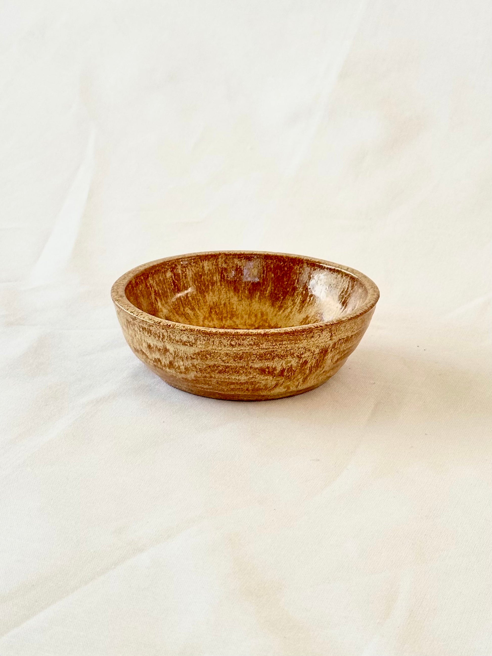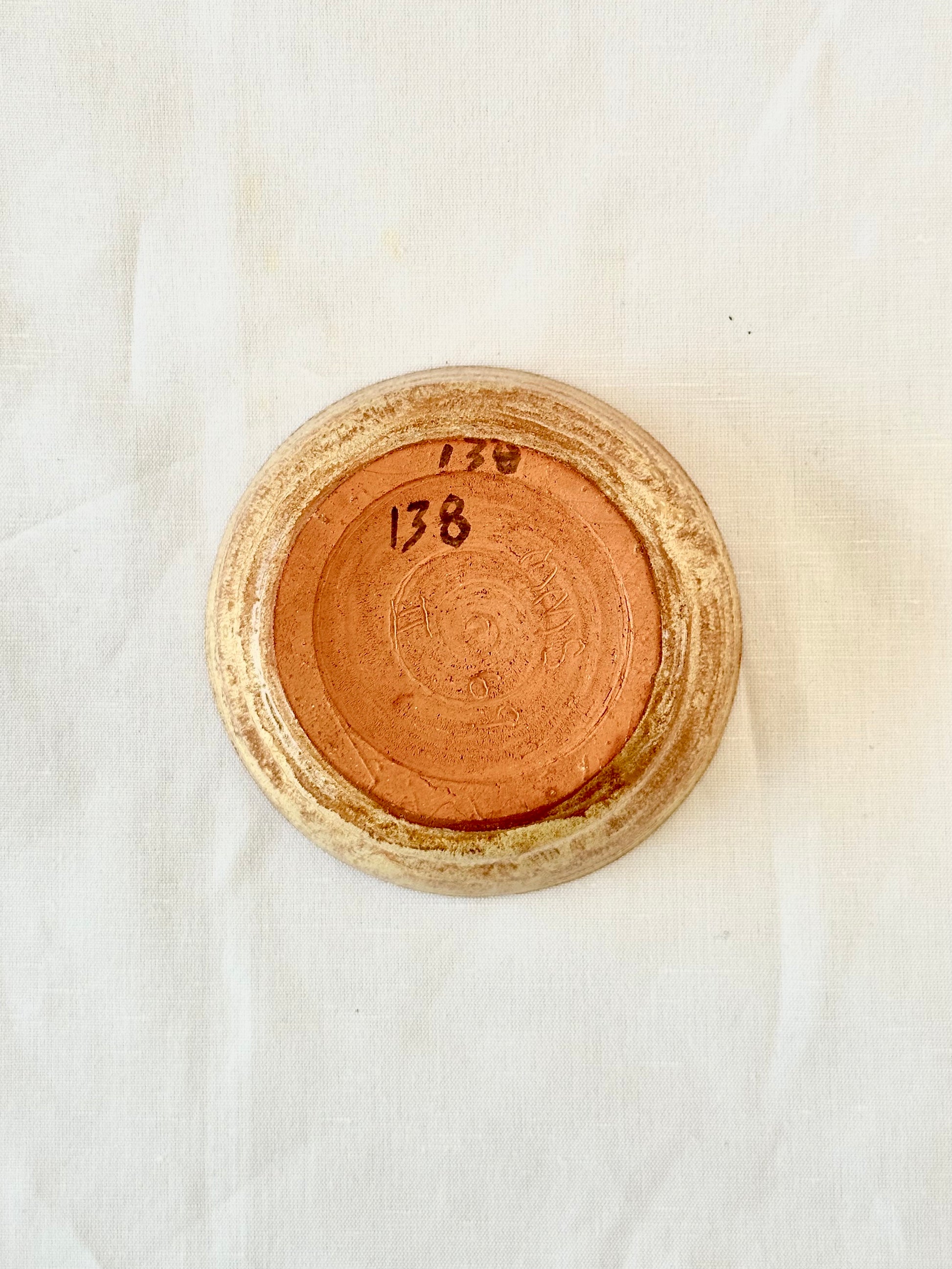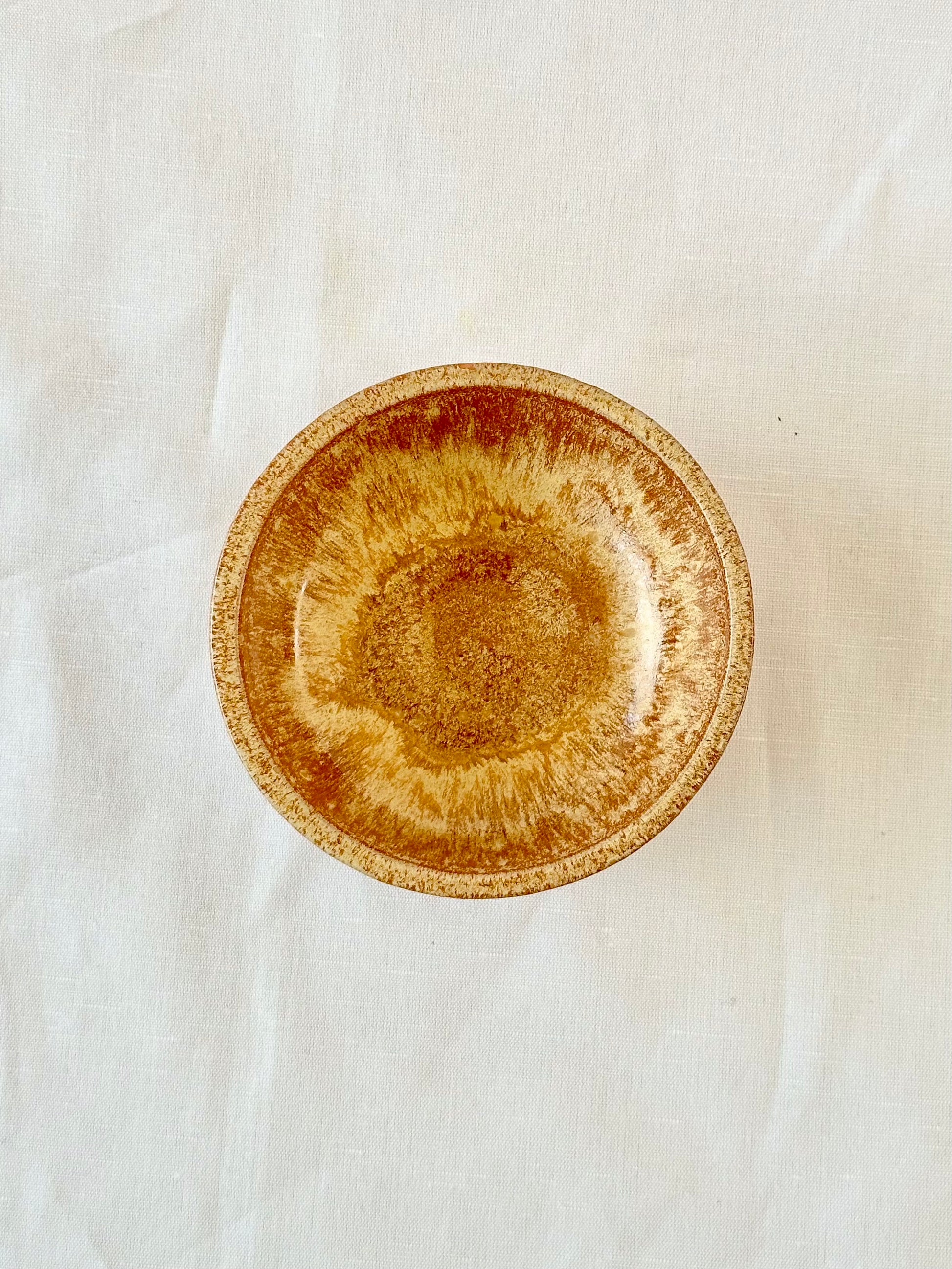 A lovely handmade earthenware pottery bowl glazed with earthy tones from 1969 signed MMS.