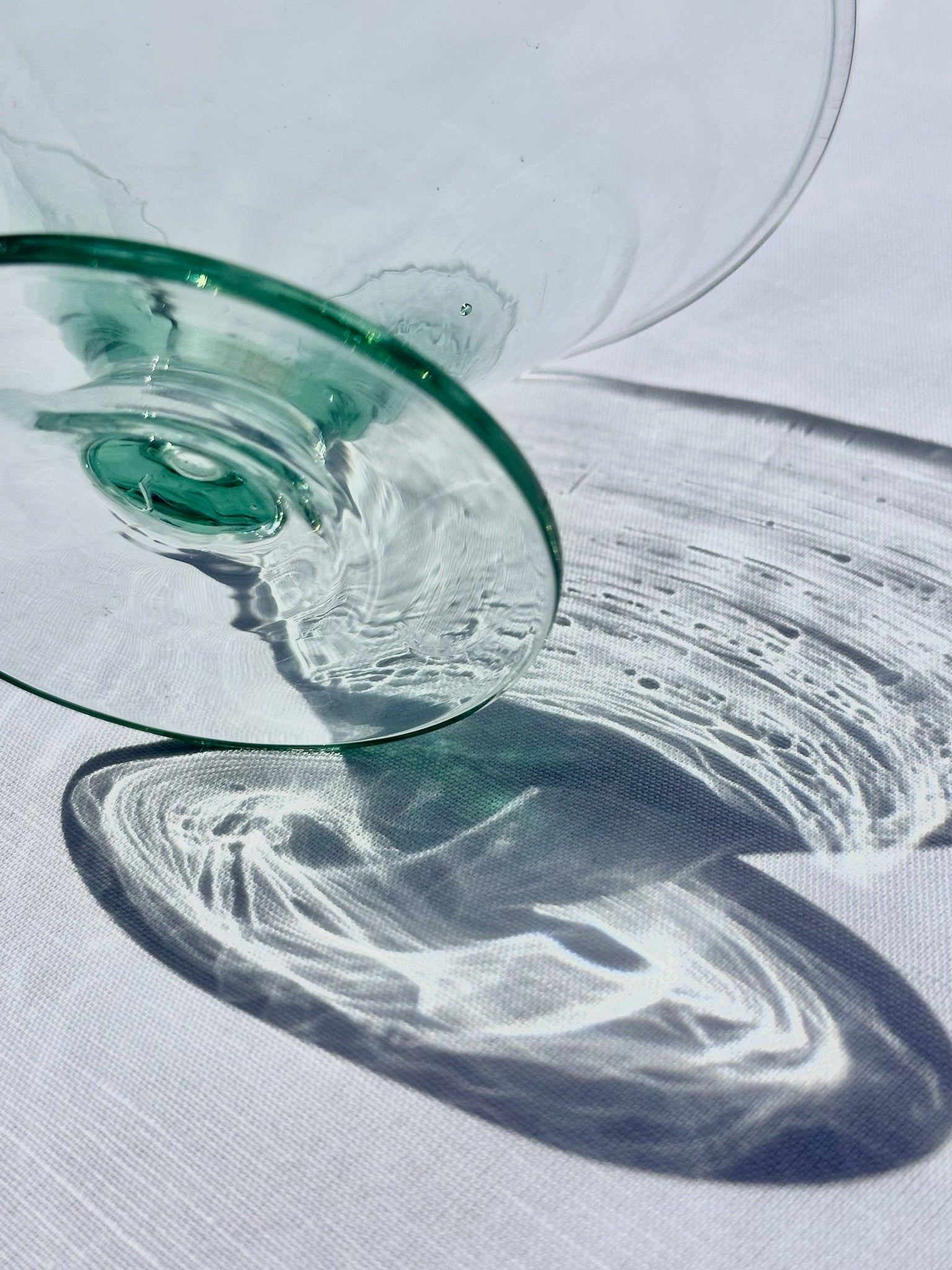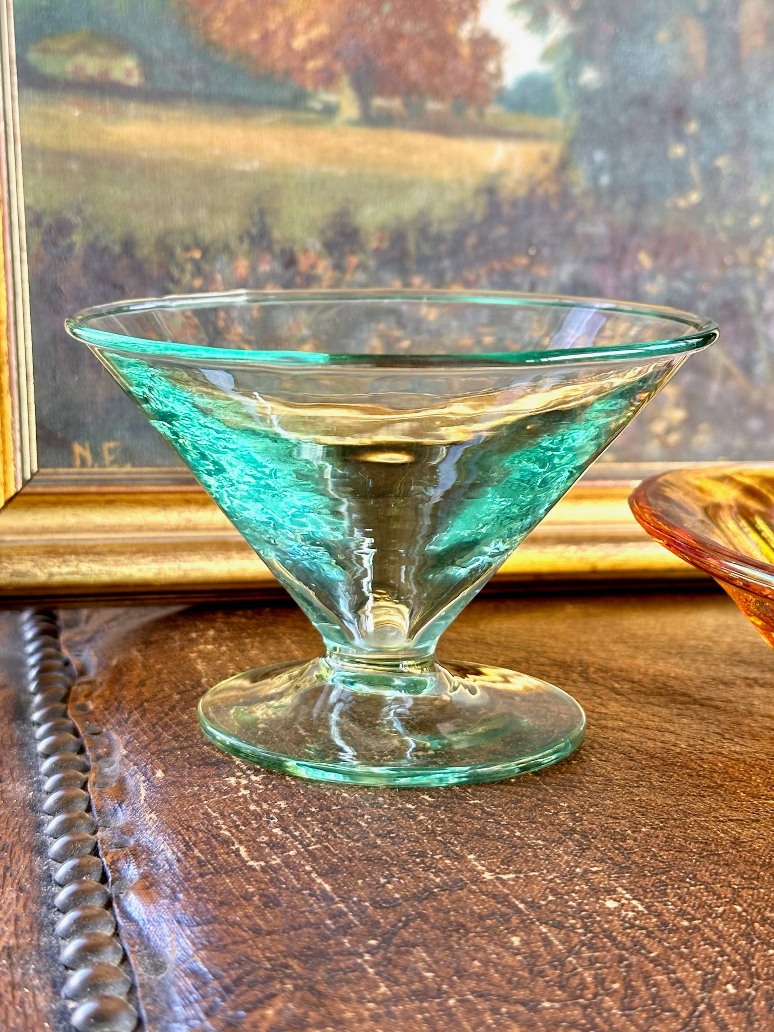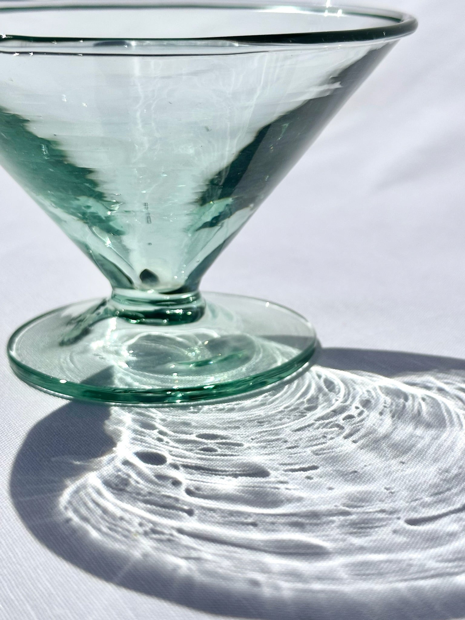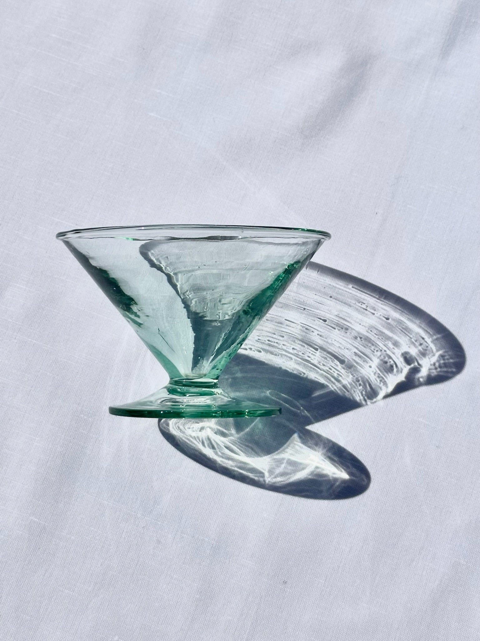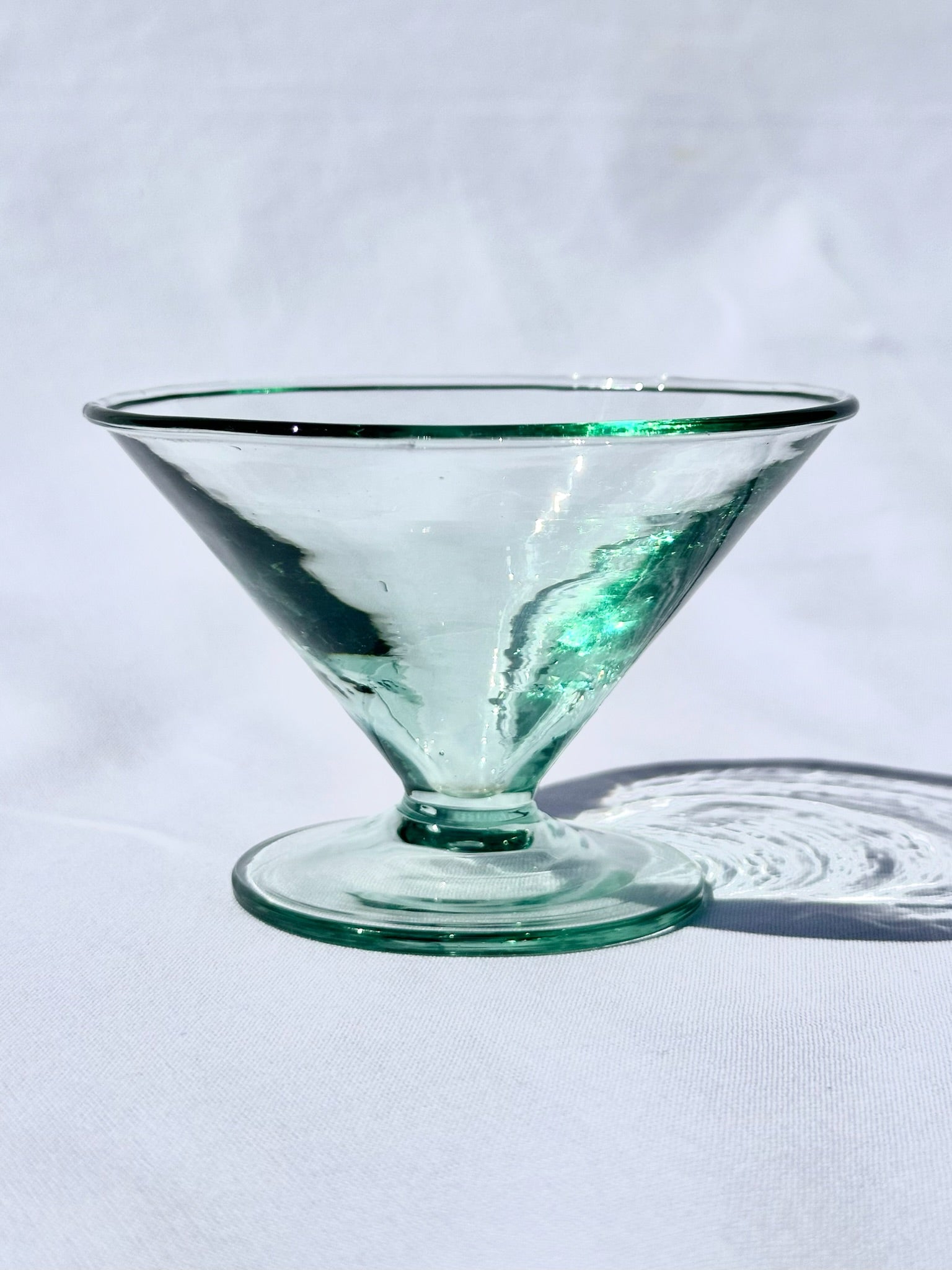 Classic martini or ice cream glass made by hand with recycled glass. Sold individually.