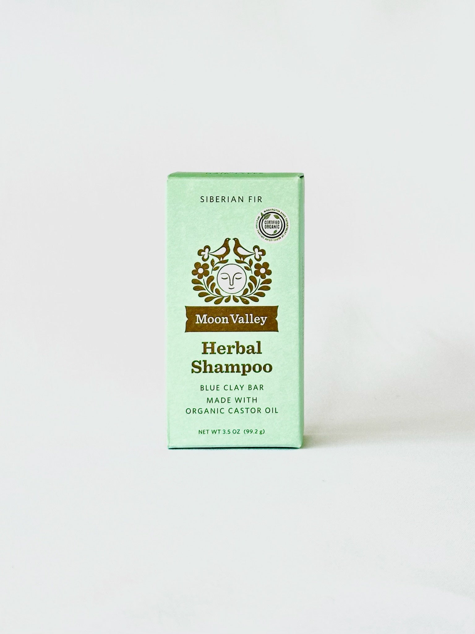 Dense with beneficial herbs and essential oils, this shampoo bar will yield twice as many washes as a liquid shampoo bottle. Blue clay bar made with organic castor oil. For all hair types.
